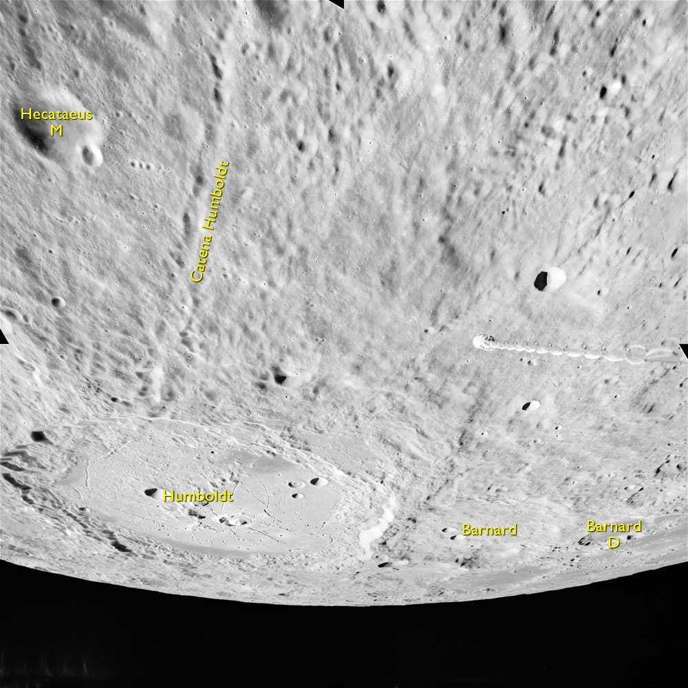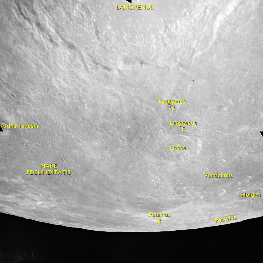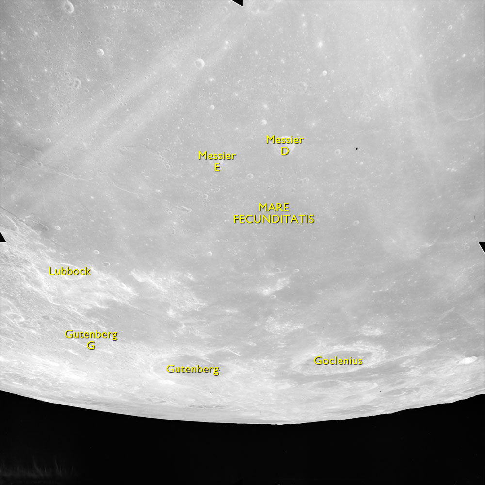 This light-toned terrain ends further south near the crater Gruithuisen, where the basalts of Mare Imbrium and Oceanus Procellarum meet. This area has some unusual features that will be the subject of much of the remaining photography.