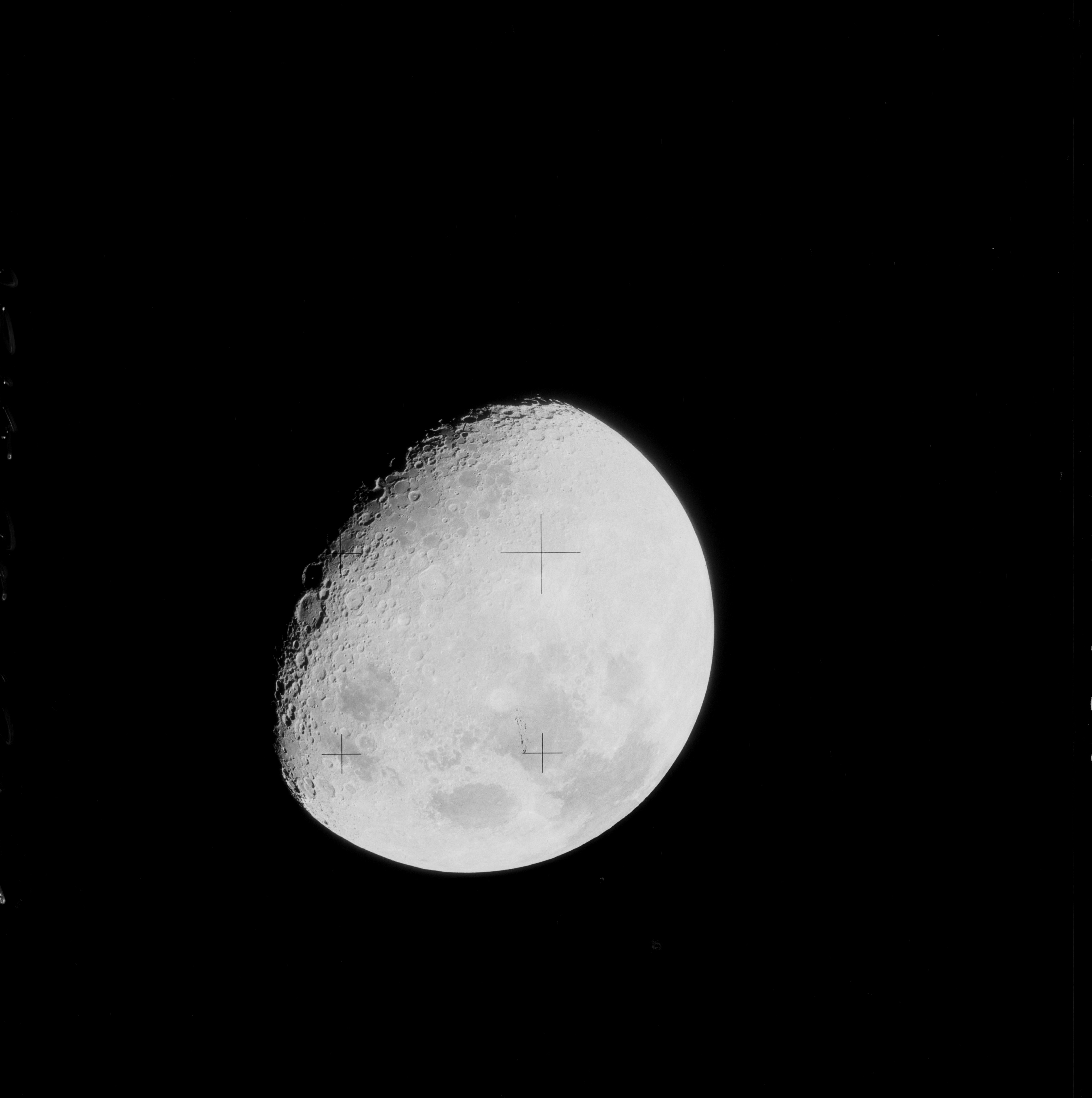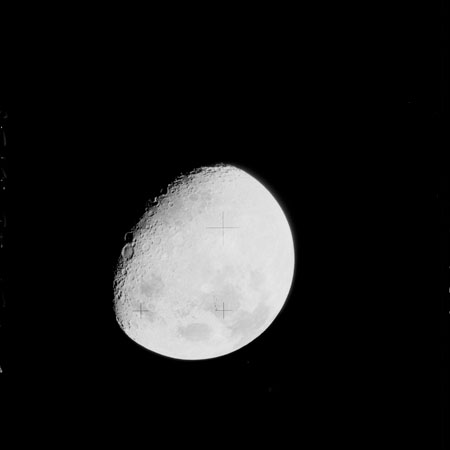 The next set of photos to be taken use the 500mm lens with a black and white film magazine, RR, to spot detail across the visible hemisphere.