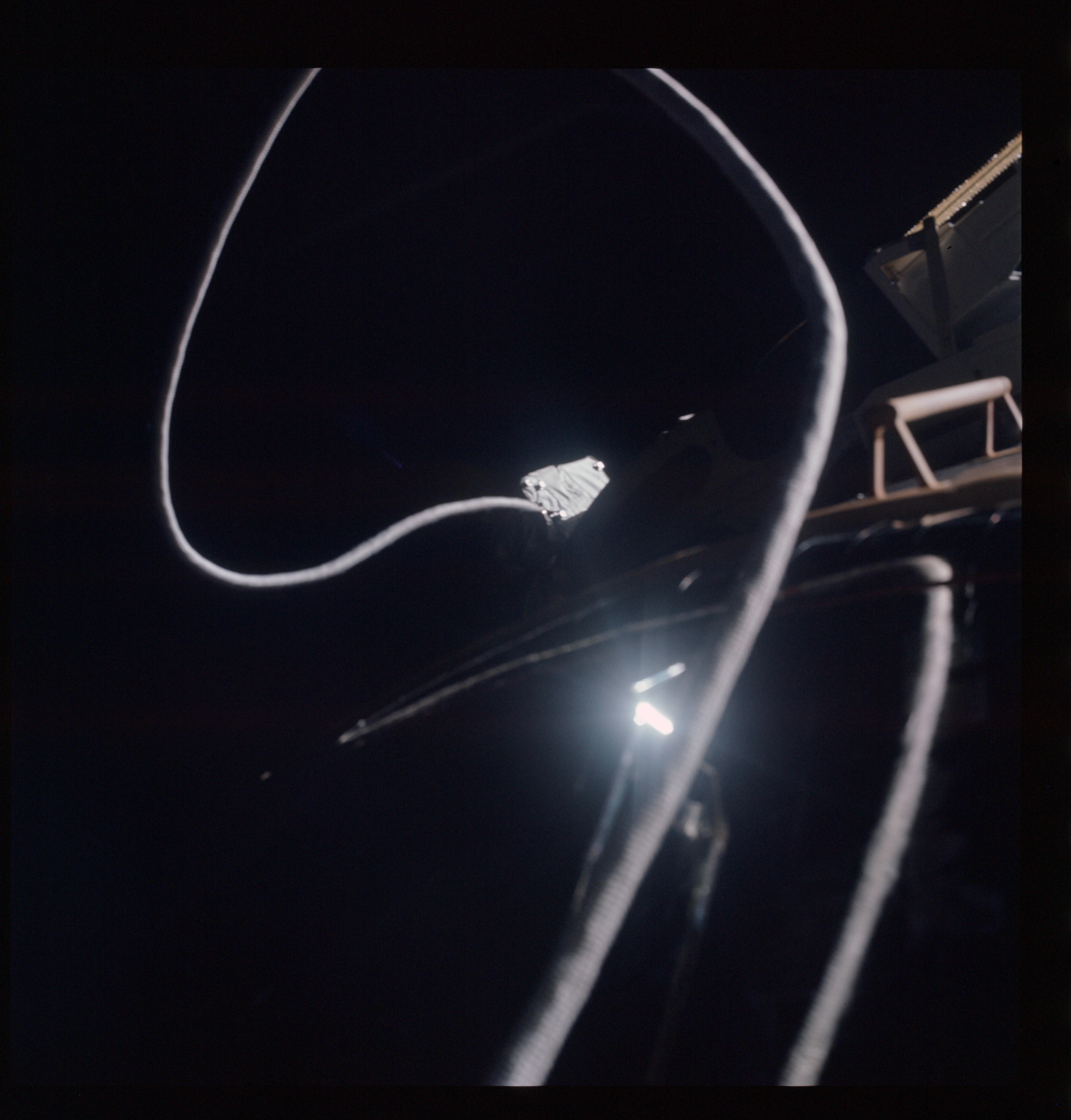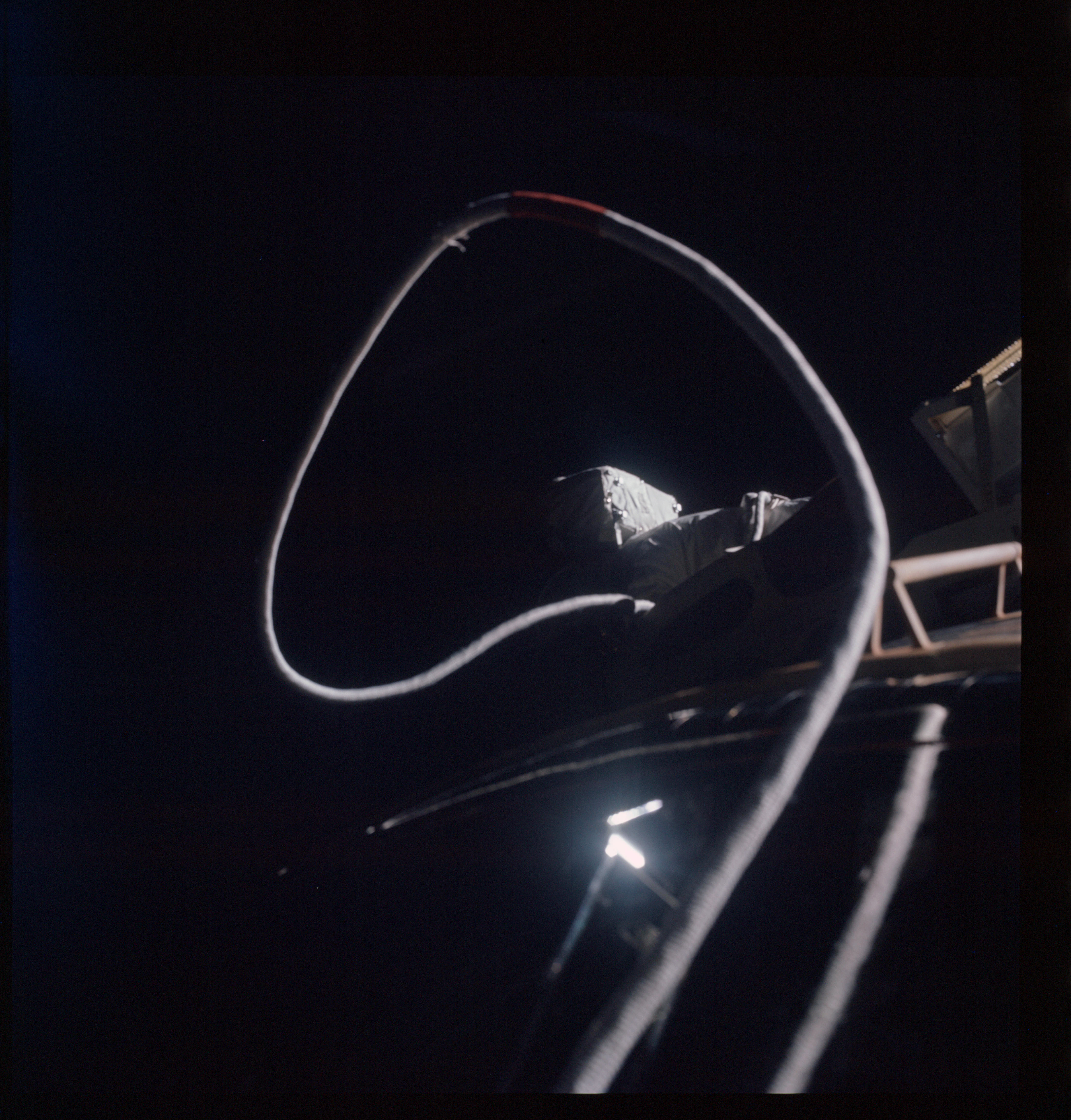 Worden (continued): "In true zero-g it was really much easier than it had been even in the zero-g airplane. I think there's some rotation that you get in the zero-g airplane that does affect your motions a little bit. True zero-g is just much easier. If you can do it in a zero-g airplane and in the Water Immersion Facility, in flight it is easy."