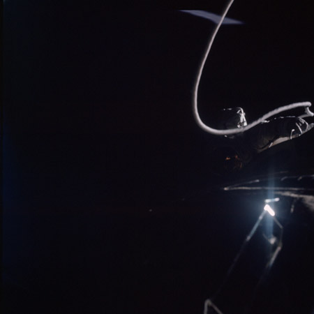 Scott, from 2004 mission review: "Weren't in a rush, but on the other hand, the purpose was to get the film and get back in. I think Al did the right thing. Came back in. I mean, it'd be nice to stay out and float around and look around but, why? So if you stay out and float around and look around and then something goes wrong during that period, then you say, 'Why did I do that?' So I think what you do is you do your job and you get back in and close the hatch and say, 'Gee, that was wonderful. I had a great time. I did my job.' I think to float around out there is exposing yourself to an unnecessary risk. It's low risk, but on the other hand, it's high risk. So what if that last minute is a time you popped a leak for some reason? Eh? So shoot, get the job over. As sort of an analogy, we used to fly airplanes in bad weather. Rule was always; go to your destination, finish your mission and then play around because if you got to get down, you got fuel."