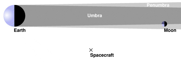 Geometry of Earth, Moon and spacecraft during eclipse.