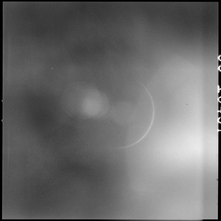 286:51:57 Scott: Well, we just got our first view of the Earth this morning, and, can you believe it's getting larger and it's getting smaller? We see just a very, very thin sliver of a very large round ball.