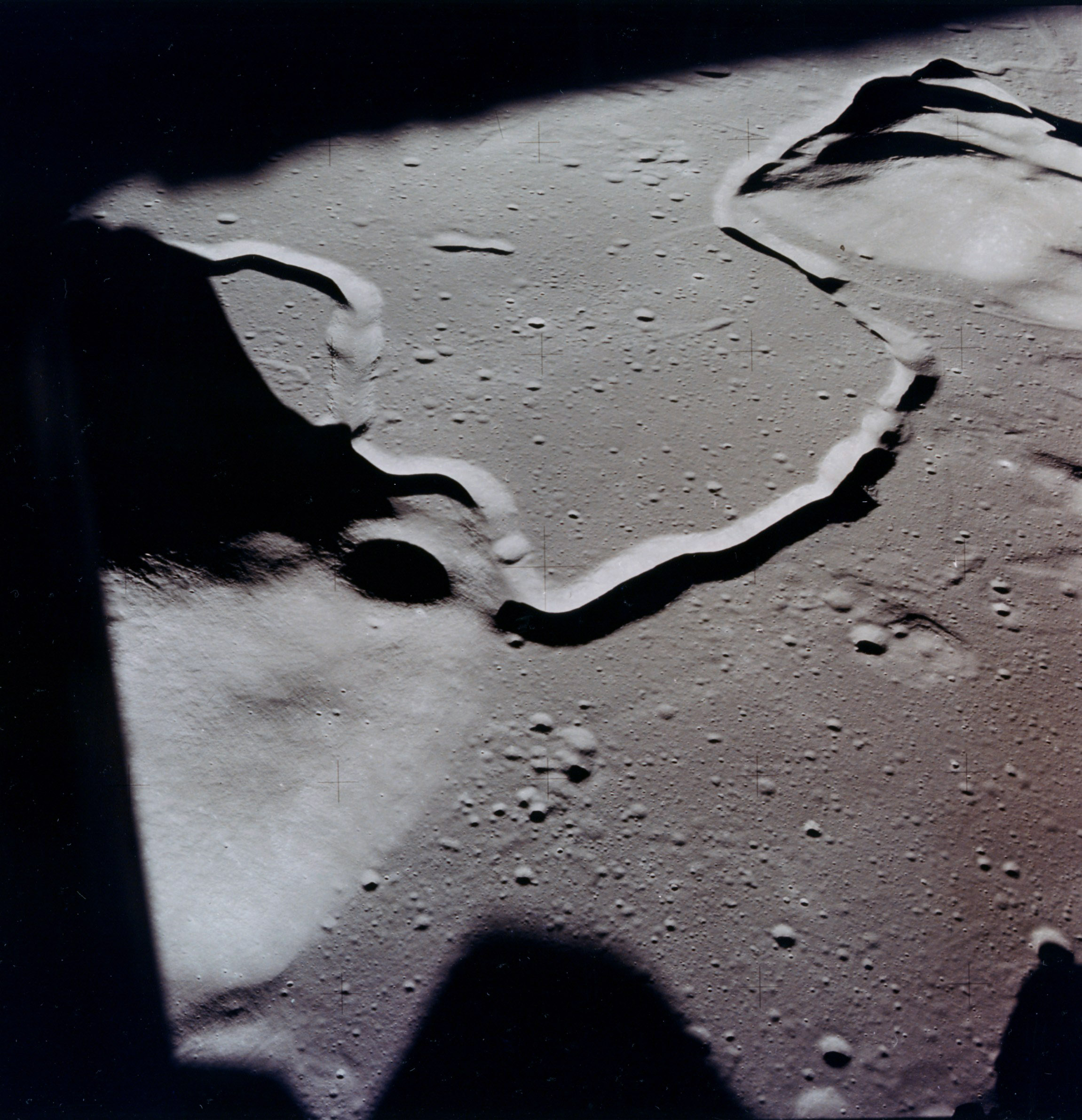Linné Crater, Dorsum von Cotta, Krishna depression, and Dorsum Buckland: one half of stereo pair.AS15-9353P.jpg (988k)