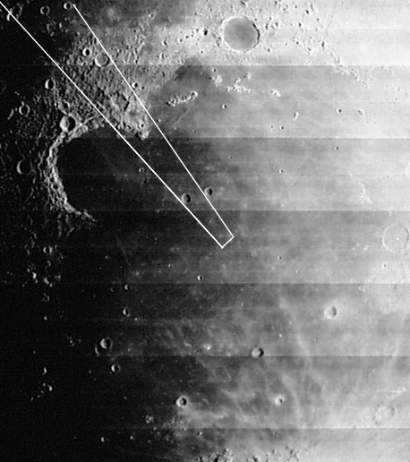 The Soviet Luna 16 landing site in the Sea of Fertility. Composite of frames AS15-97-13218, 13219, 13221, 13223, and 13225.lutke.jpg (114k)