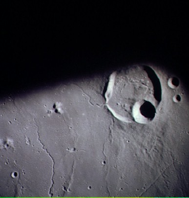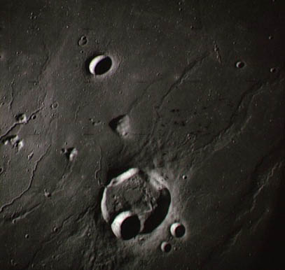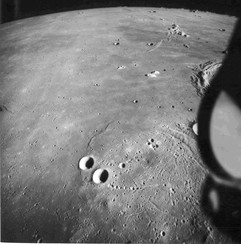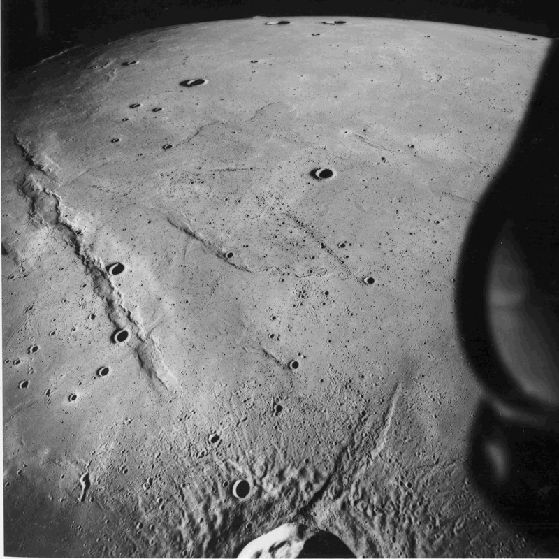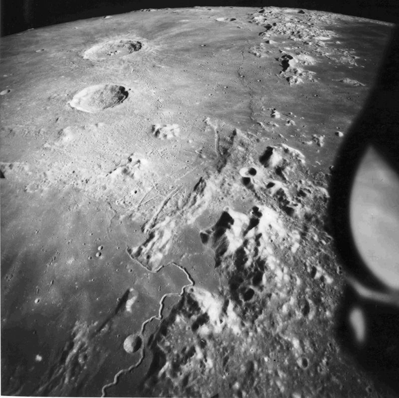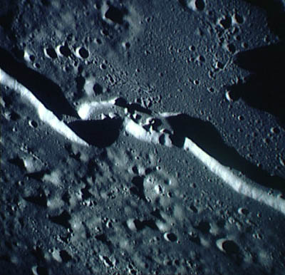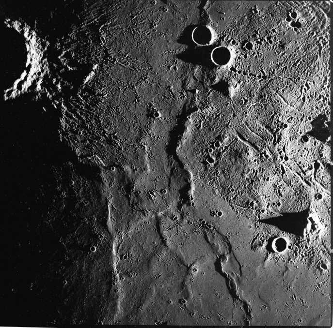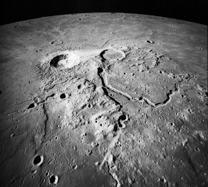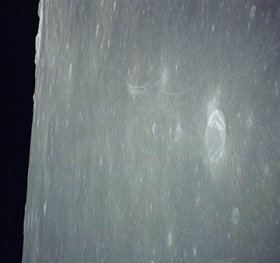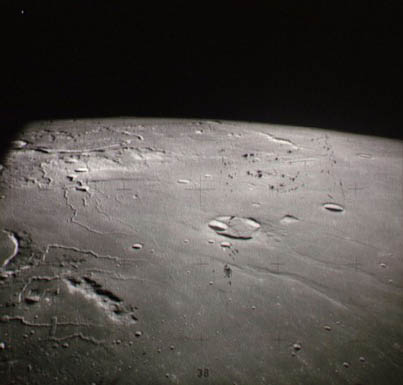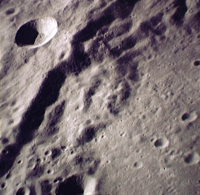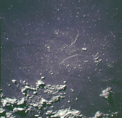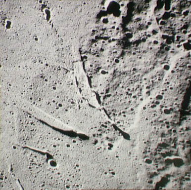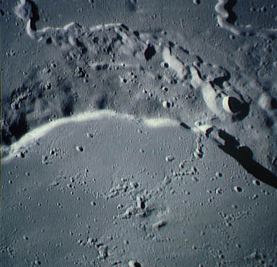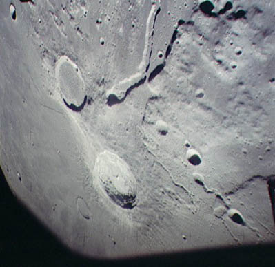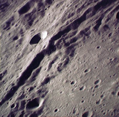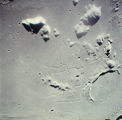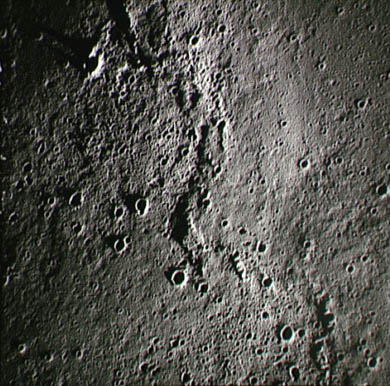 Linné, and Hornsby craters with Krishna depression and Dorsum von Cotta, Dorsum Owen, and Dorsum Gast.AS15-0414M.jpg (247k)