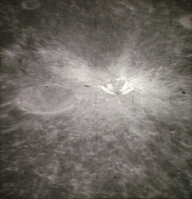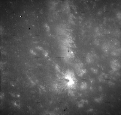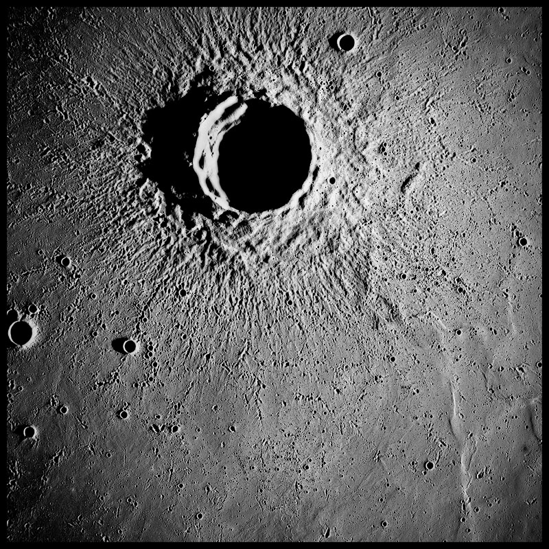 Oblique view of Tsiolkovsky crater and its ejecta blanket.AS15-0835M.jpg (168k)