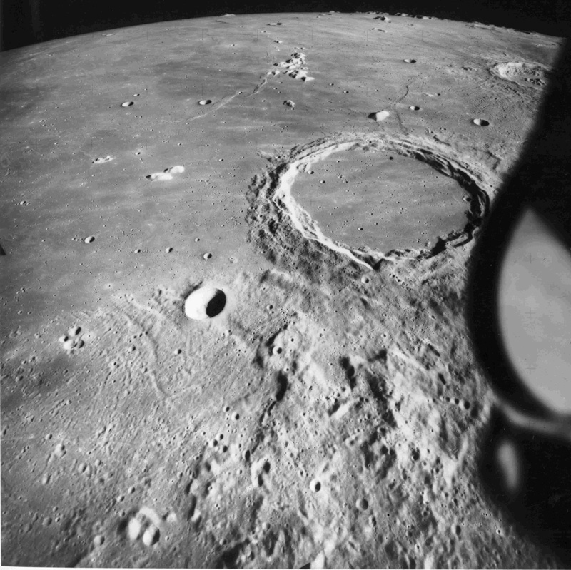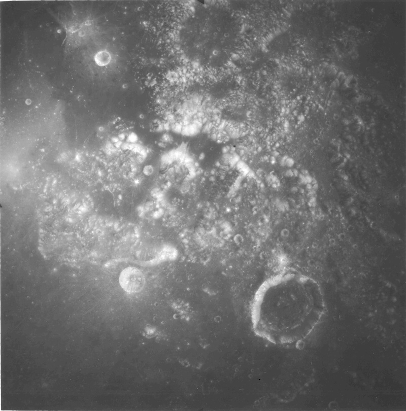 Moving further west of previous image, Timocharis Crater appears at bottom of frame.AS15-1548M.jpg (234k)