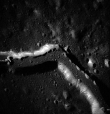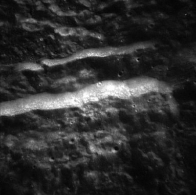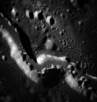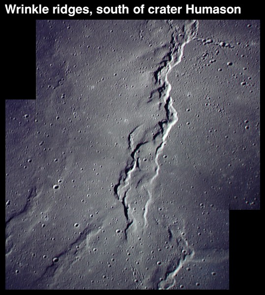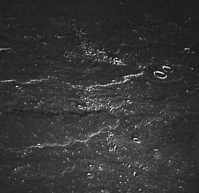 Wrinkle ridges near Humason Crater (formerly Lichtenberg G). Composite of frames AS15-97-13264 and 13265.rimaaris8.jpg (93k)