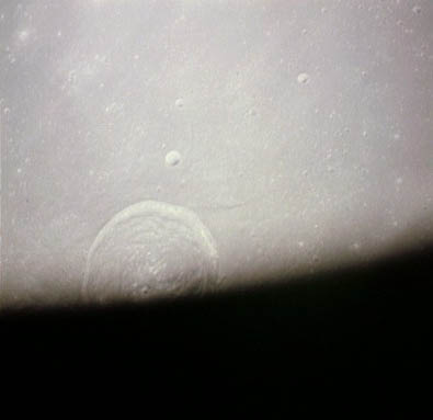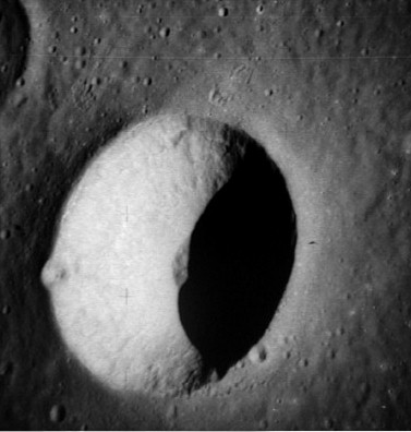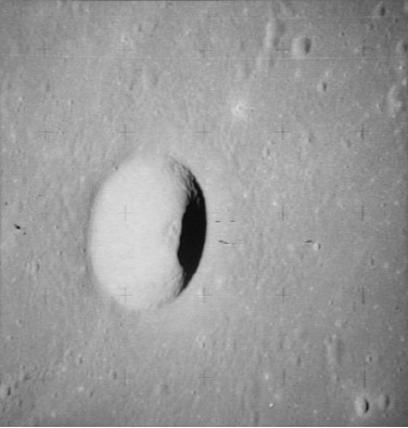 Seleucus E Crater in the Ocean of Storms. Composite of frames AS15-98-13360 and 13361.
