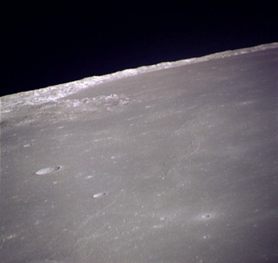 Further west over the Sea of Serenity: Apollo 17 landing site at Taurus Littrow with the Sea of Tranquillity to the south.AS15-1524M.jpg (183k)