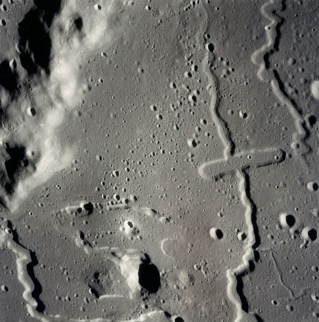 Linné Crater, Dorsum von Cotta, Krishna depression, and Dorsum Buckland: one half of stereo pair.AS15-9375P.jpg (1,090k)