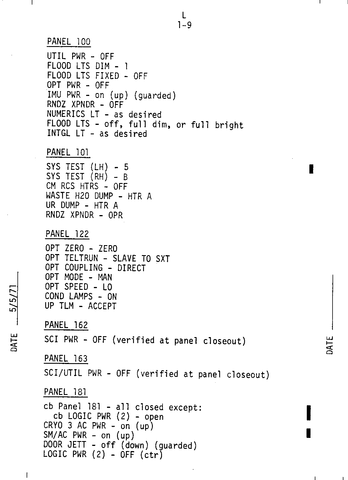- 1-09 Panel 100, 101, 122, 162, 163, 181
