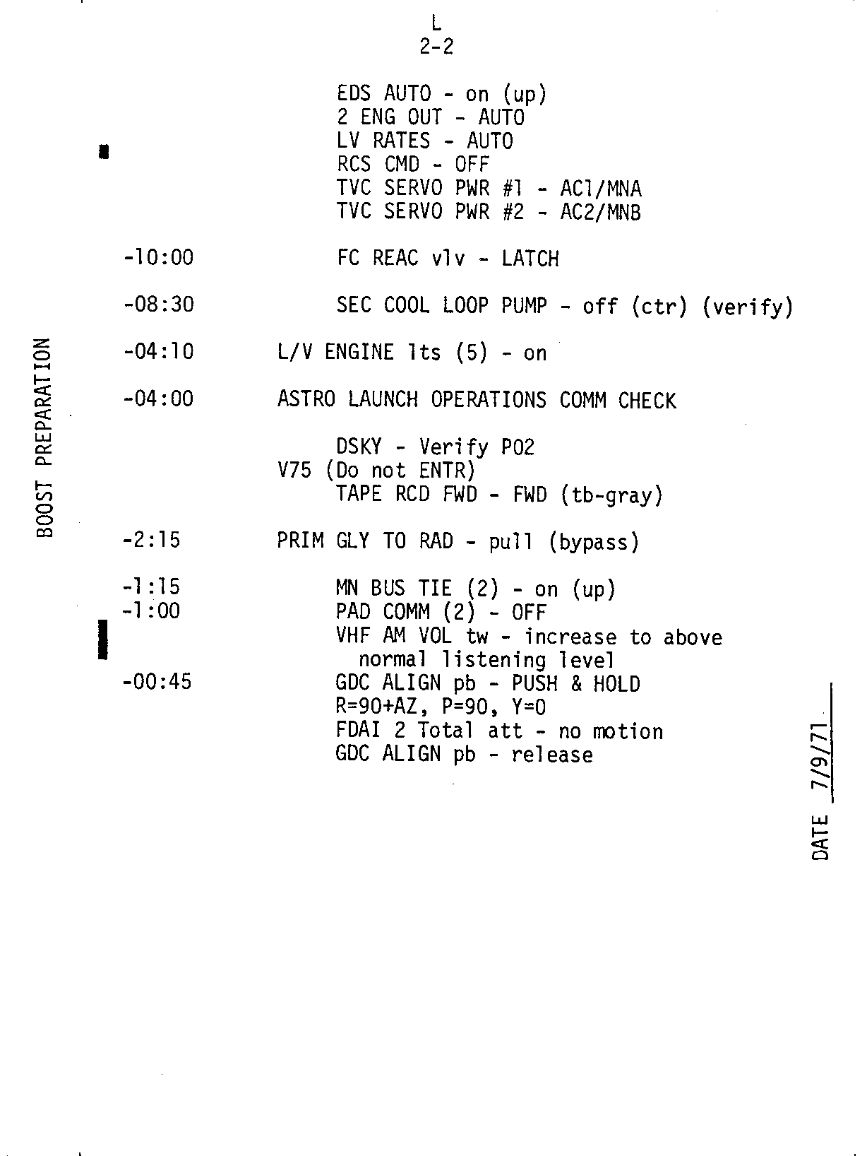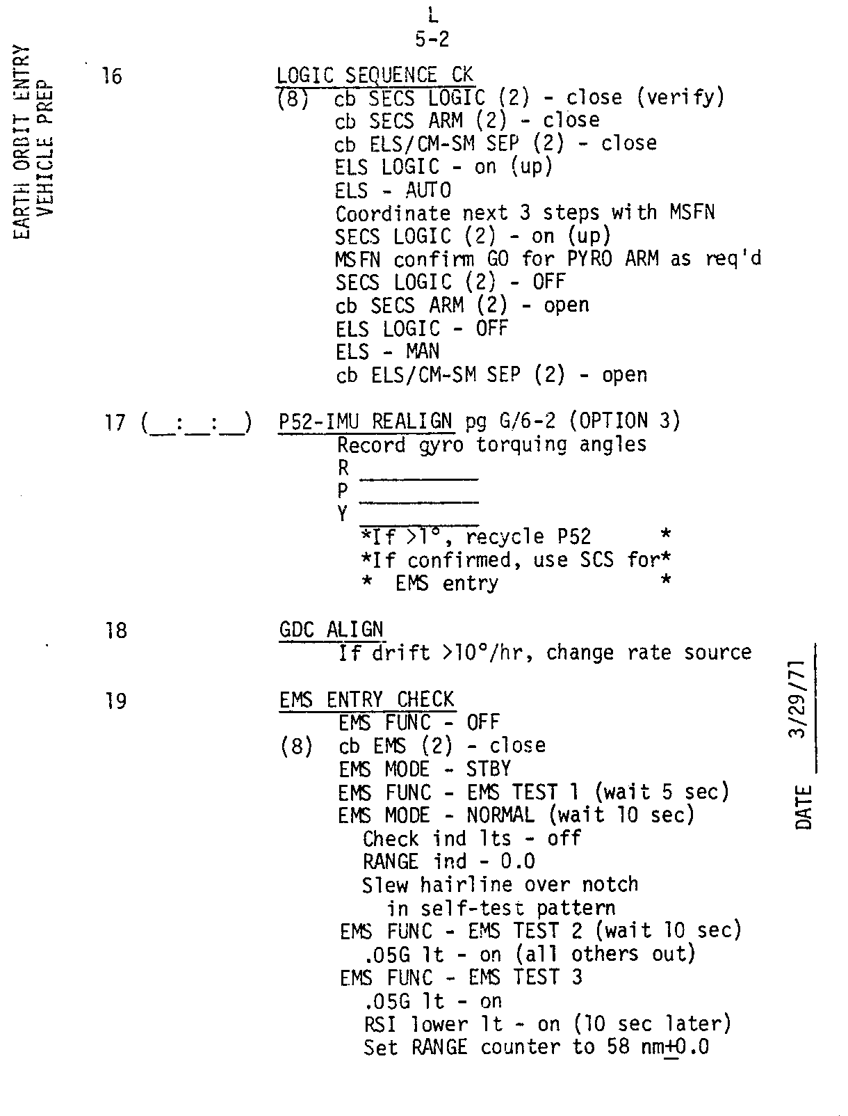 - 2-15 ECS, SPS, GDC align, ORDEAL