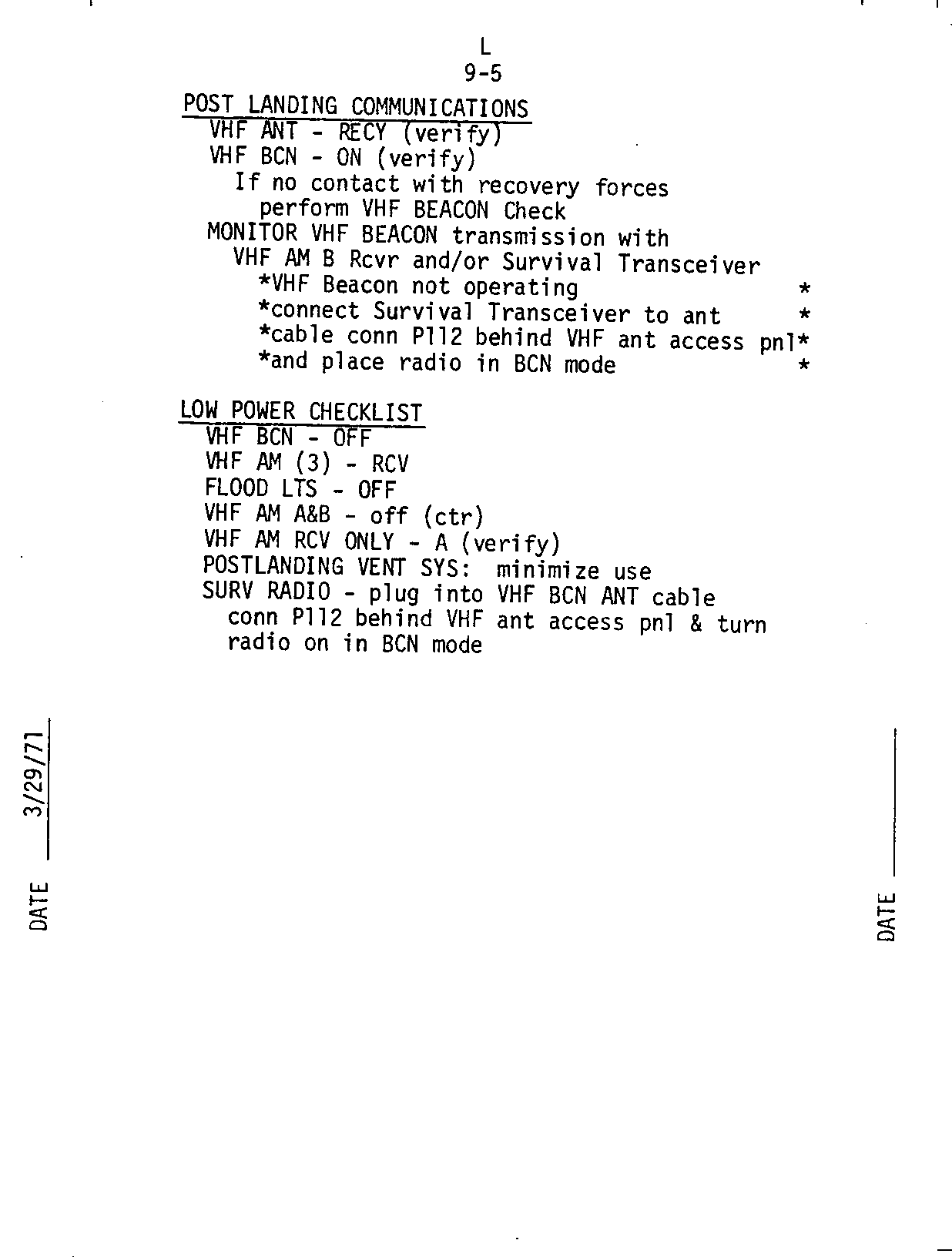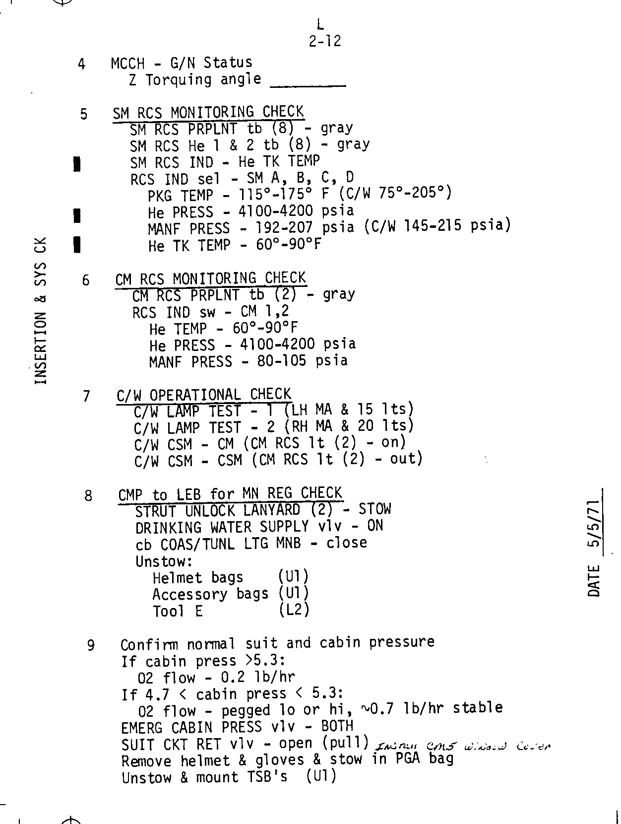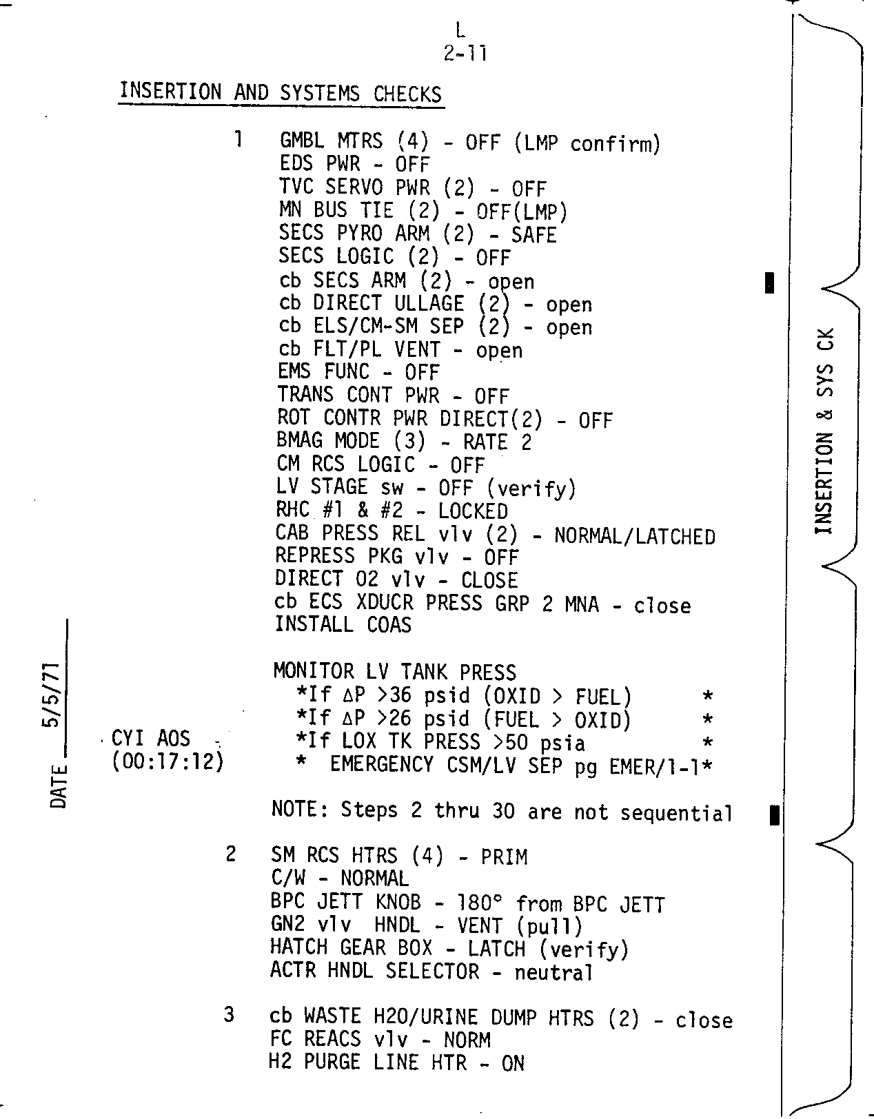 - 2-11 Insertion and systems checks