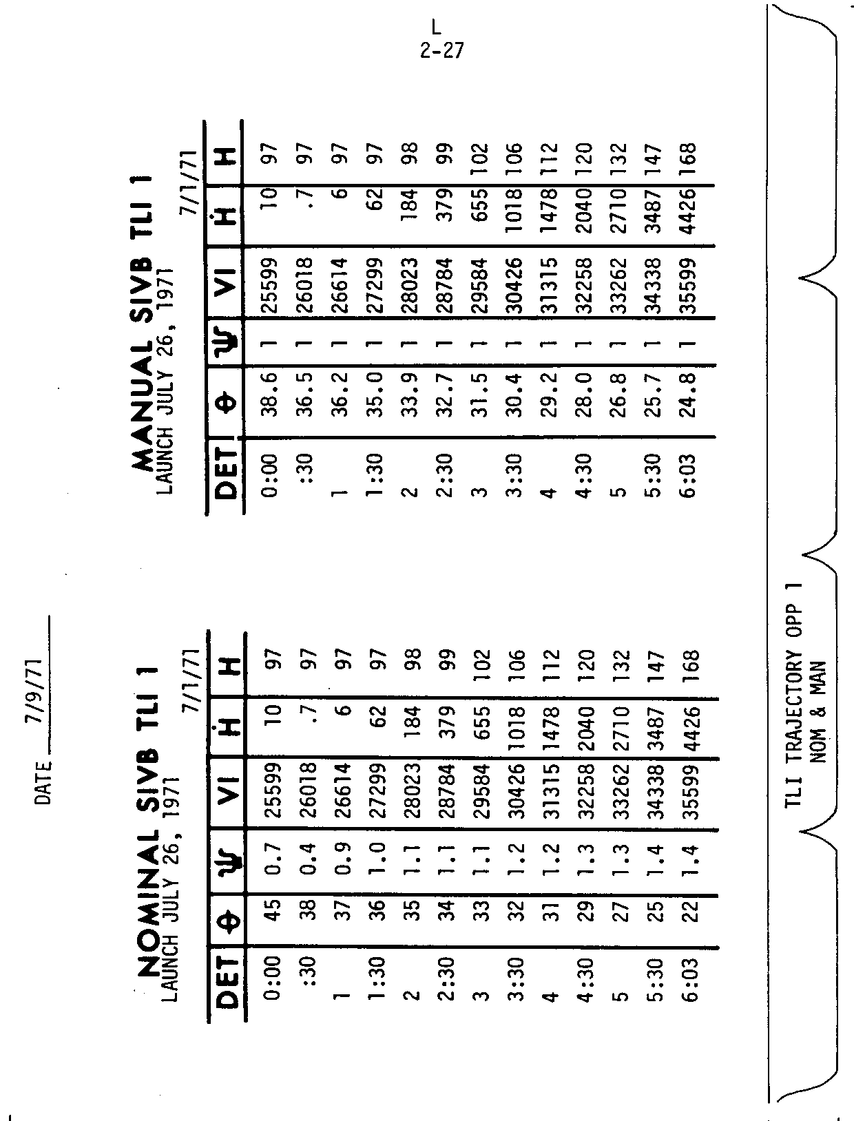 - 2-27 TLI trajectory, 1st opportunity, nominal & manual