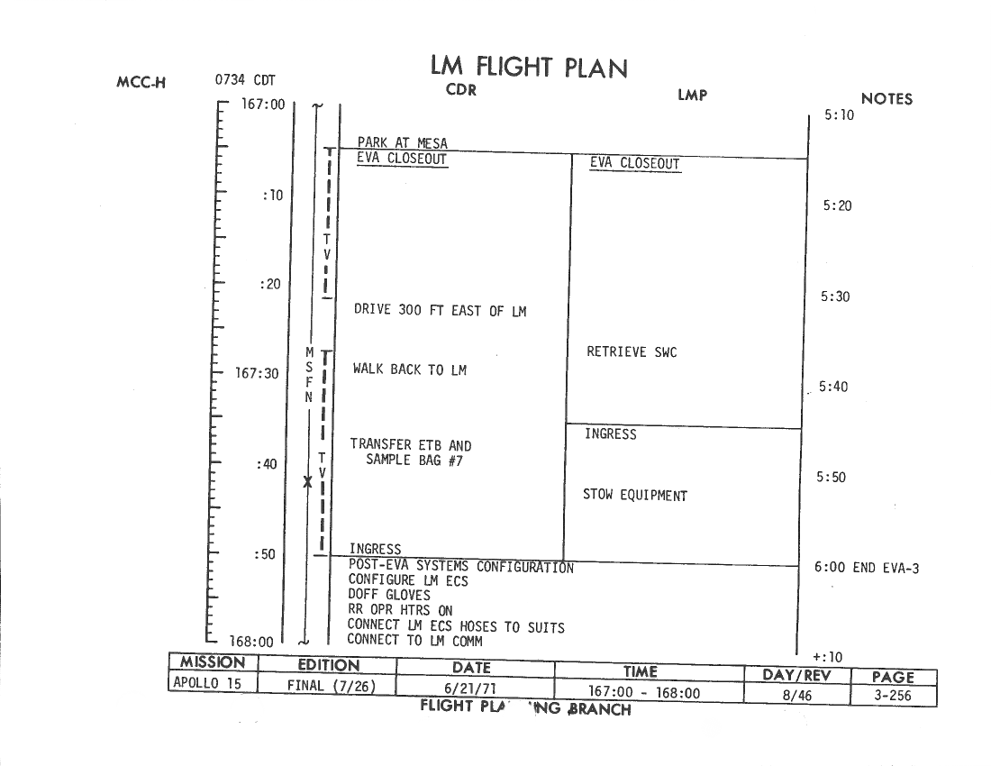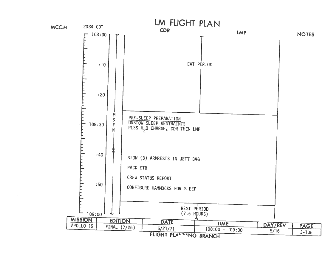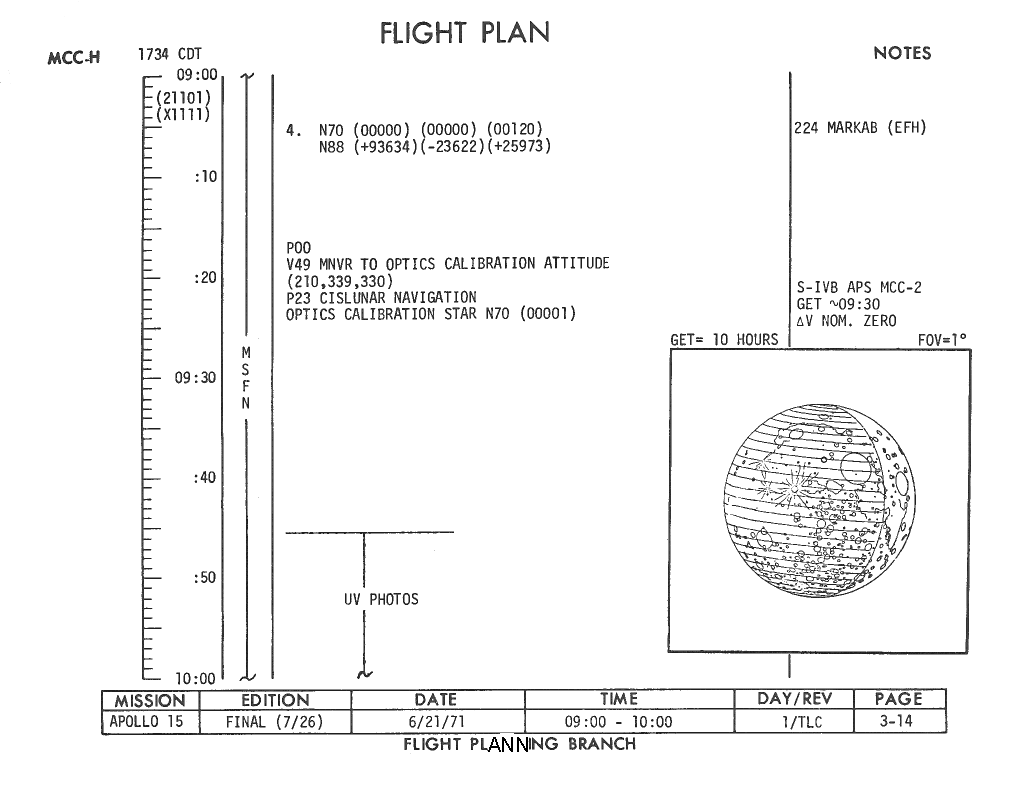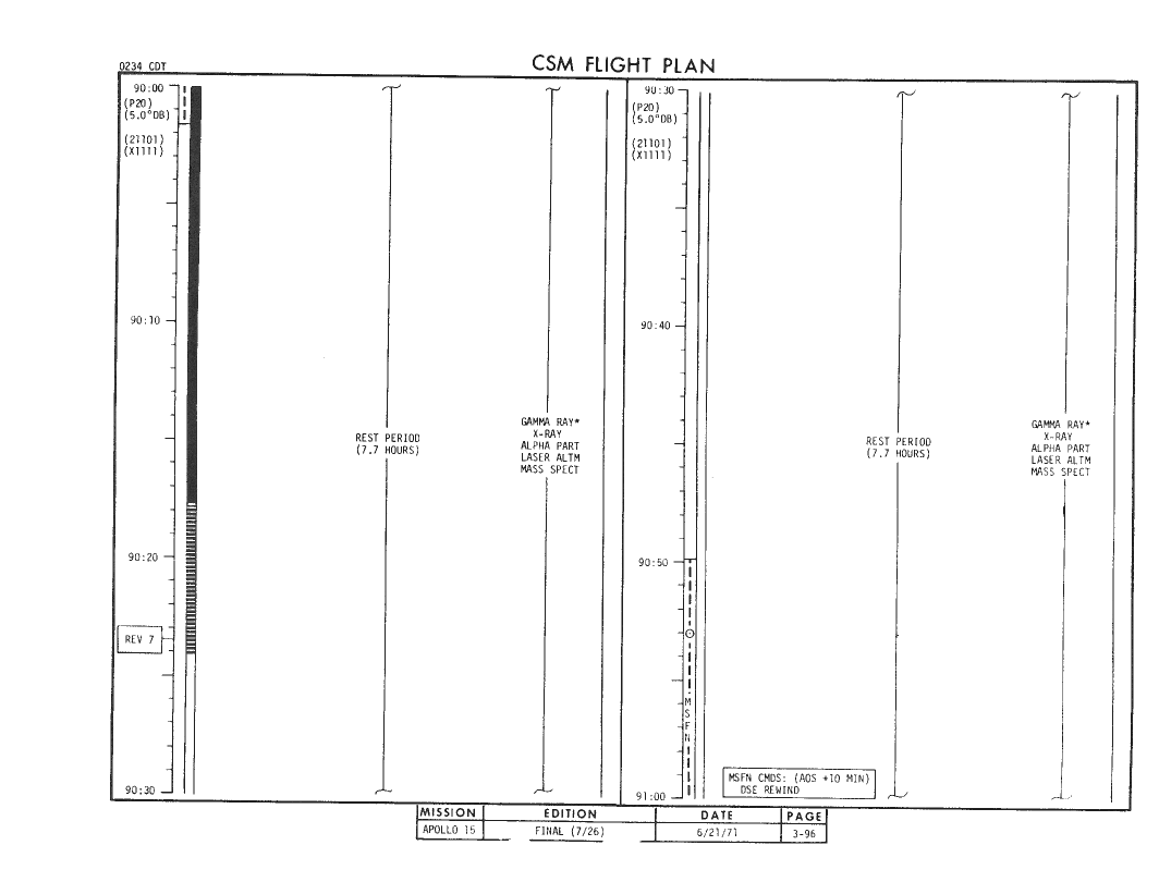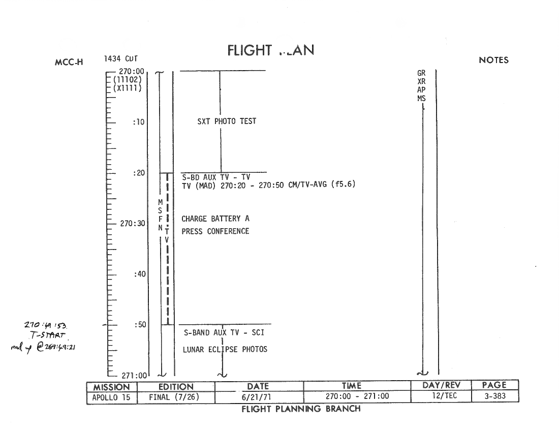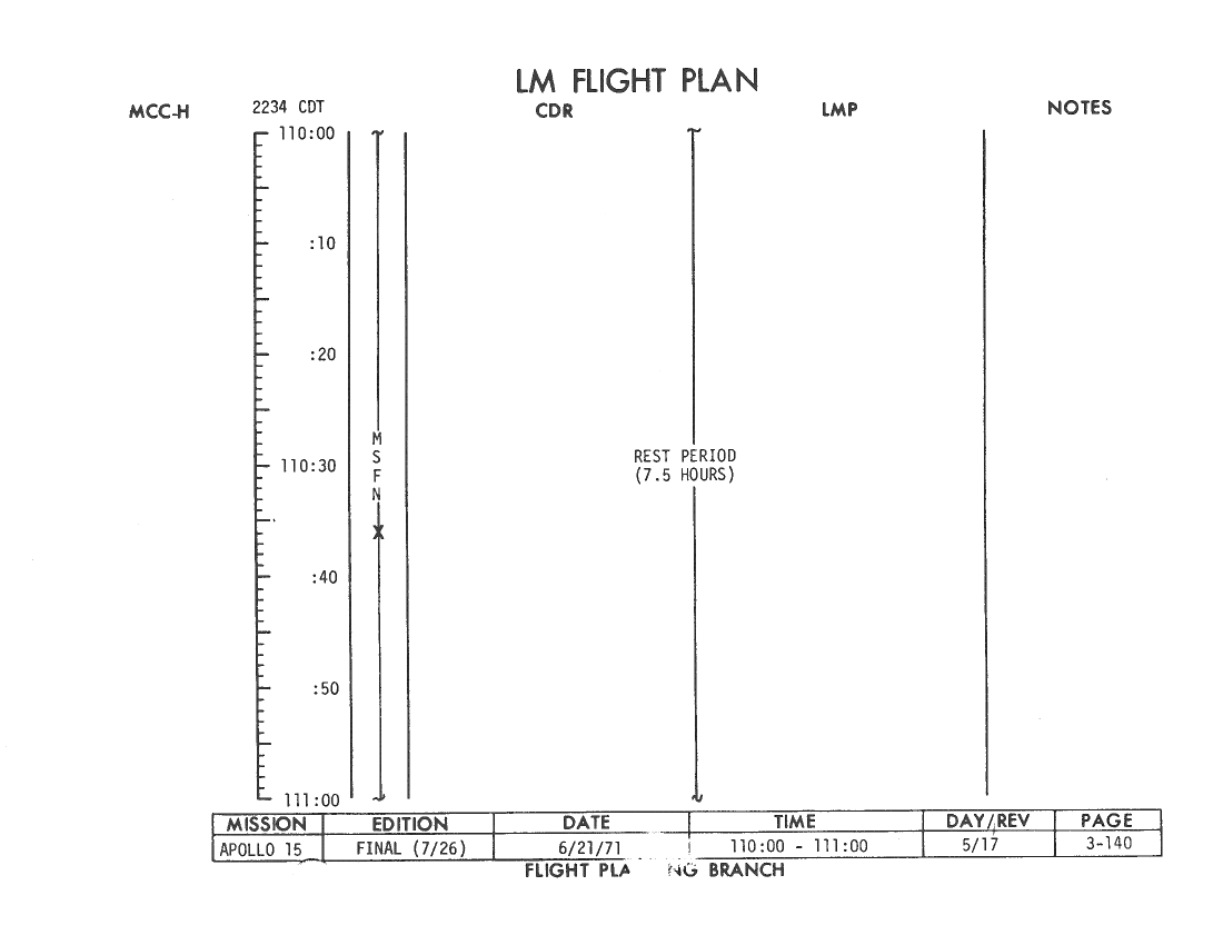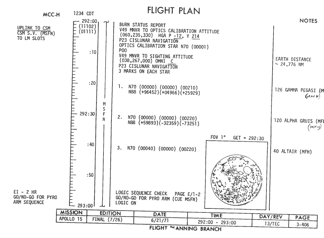 All hand-written additions in this copy of the Flight Plan were made by David Woods during the compilation of this Journal and largely represent the updates read to the crew during the flight.