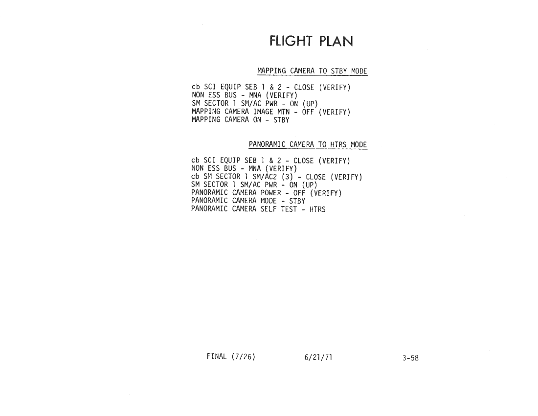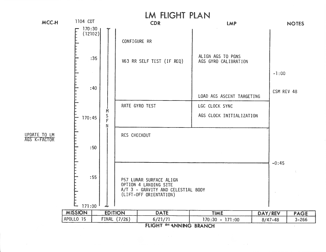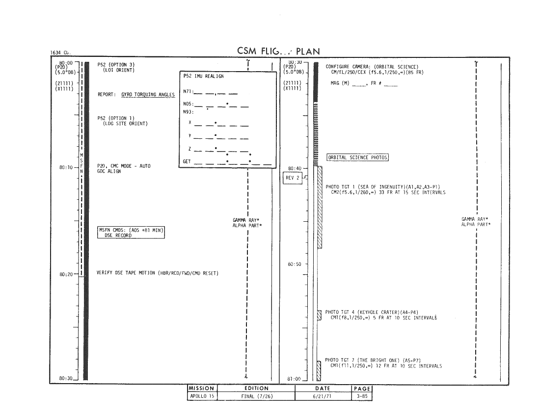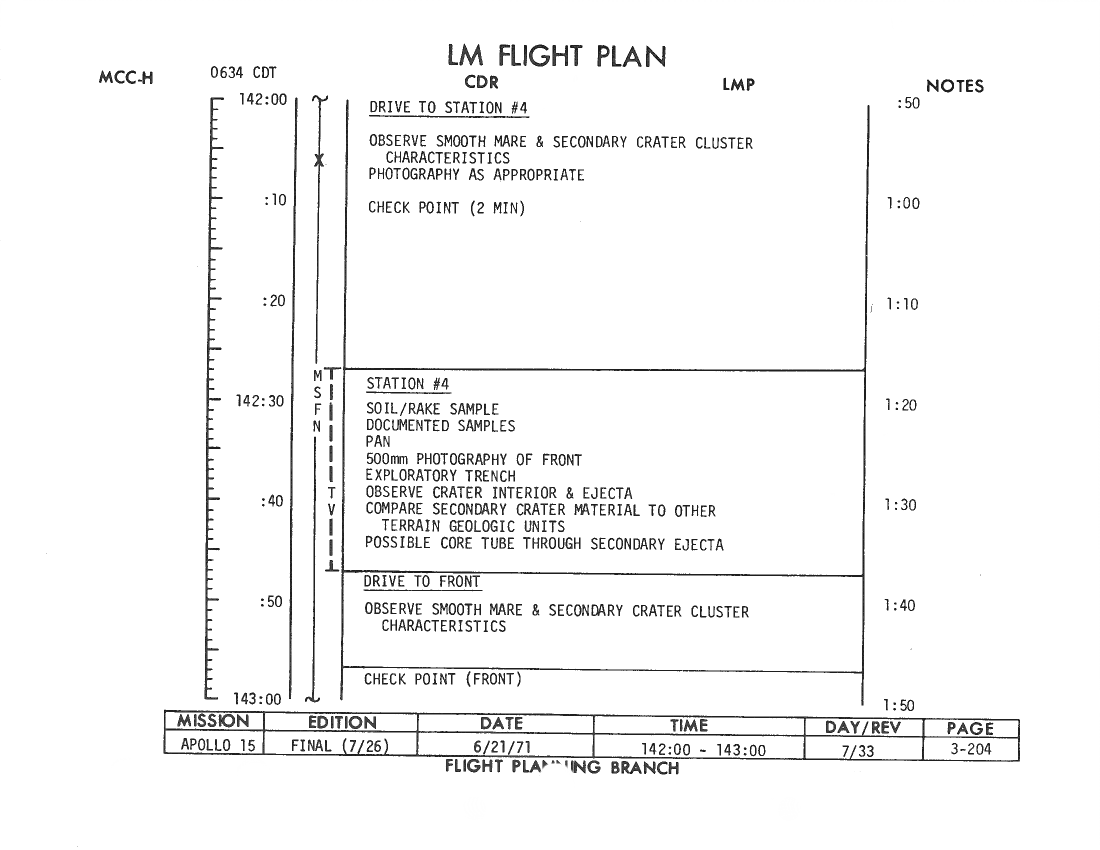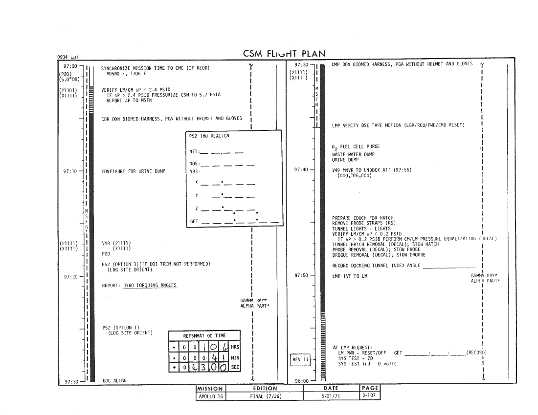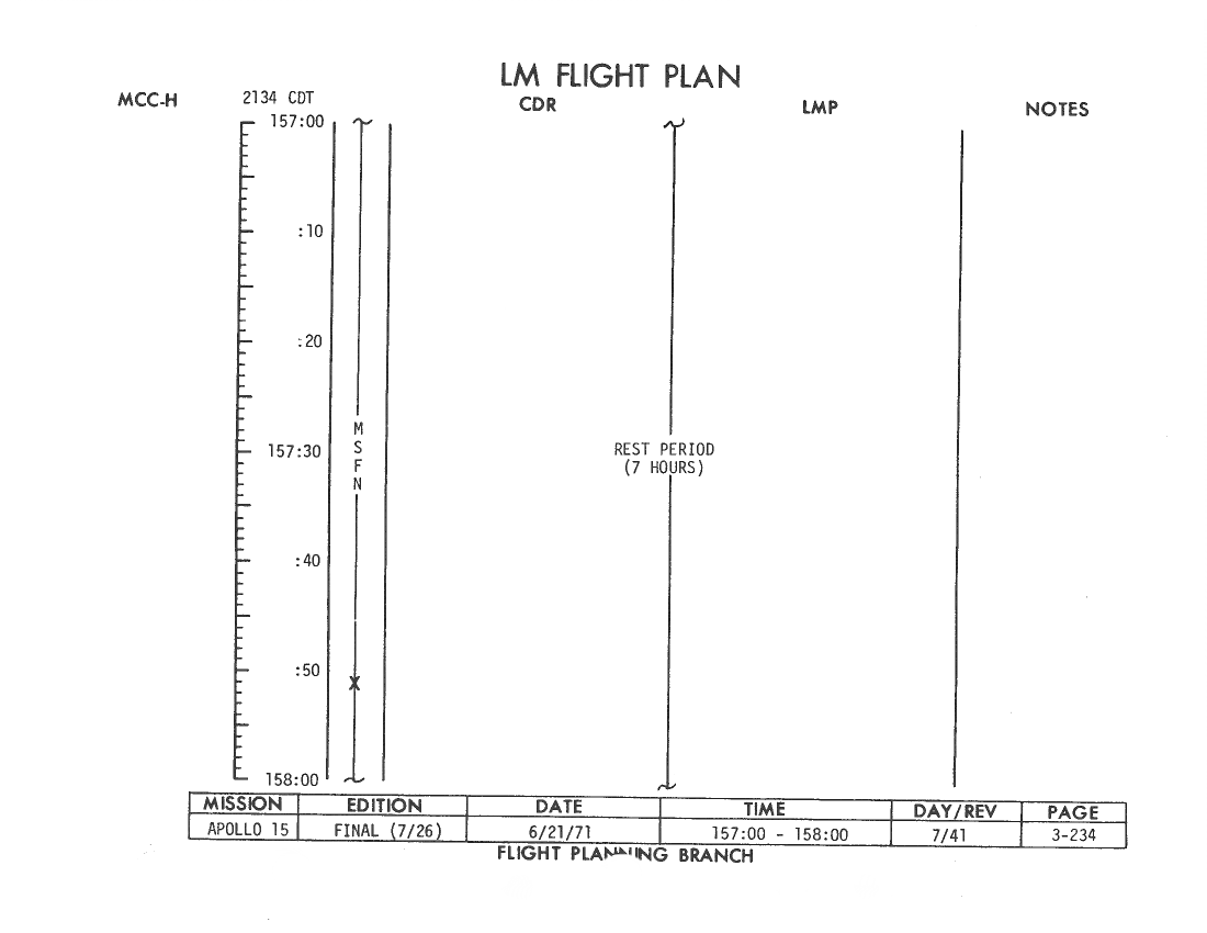 All hand-written additions in this copy of the Flight Plan were made by David Woods during the compilation of this Journal and largely represent the updates read to the crew during the flight.