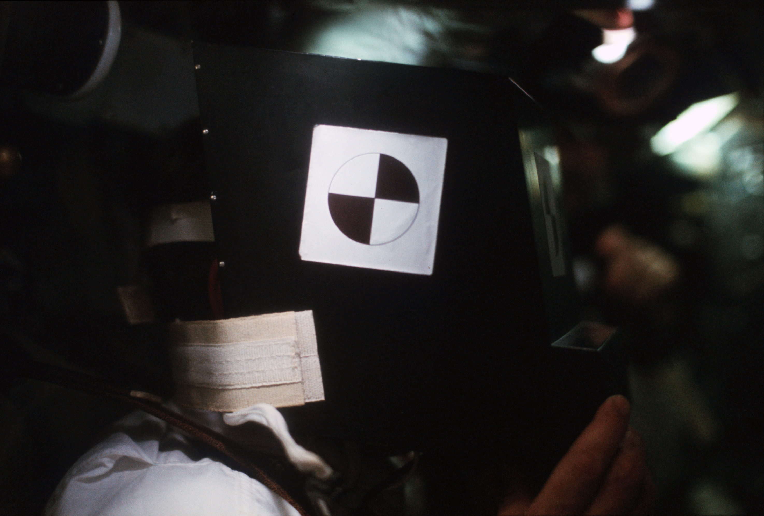 068:50:43 Cernan: Just about a second or two after Ron said "Mark," I saw a vertical bright line in the left side of the left eye; just flashed. [Long pause.]