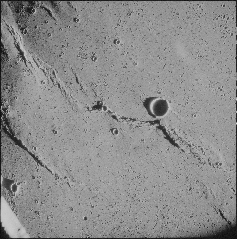 093:41:00 Schmitt: Houston, this is the LMP. There seem to be two general kinds of ray patterns: those associated with a lot of secondaries and light colored, and those that have no visible secondaries. And that's independent, yet, from the irregular light-colored areas we've been calling swirls.