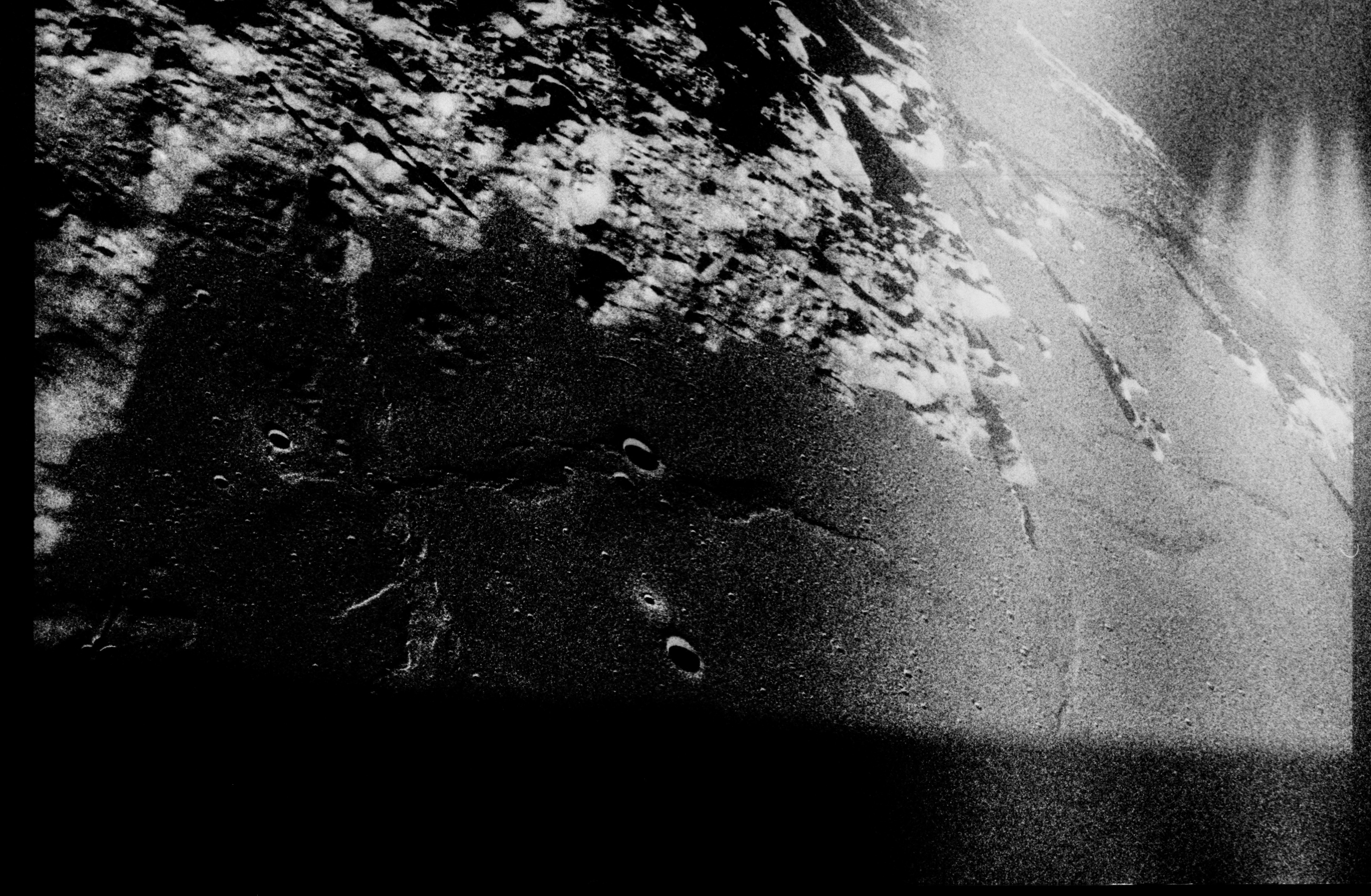 Evans (onboard): There's a tremendous crater chain or something going off in the northwest direction. It goes south of Rutkin [?] right next to Bečvář. No, that can't be right.
