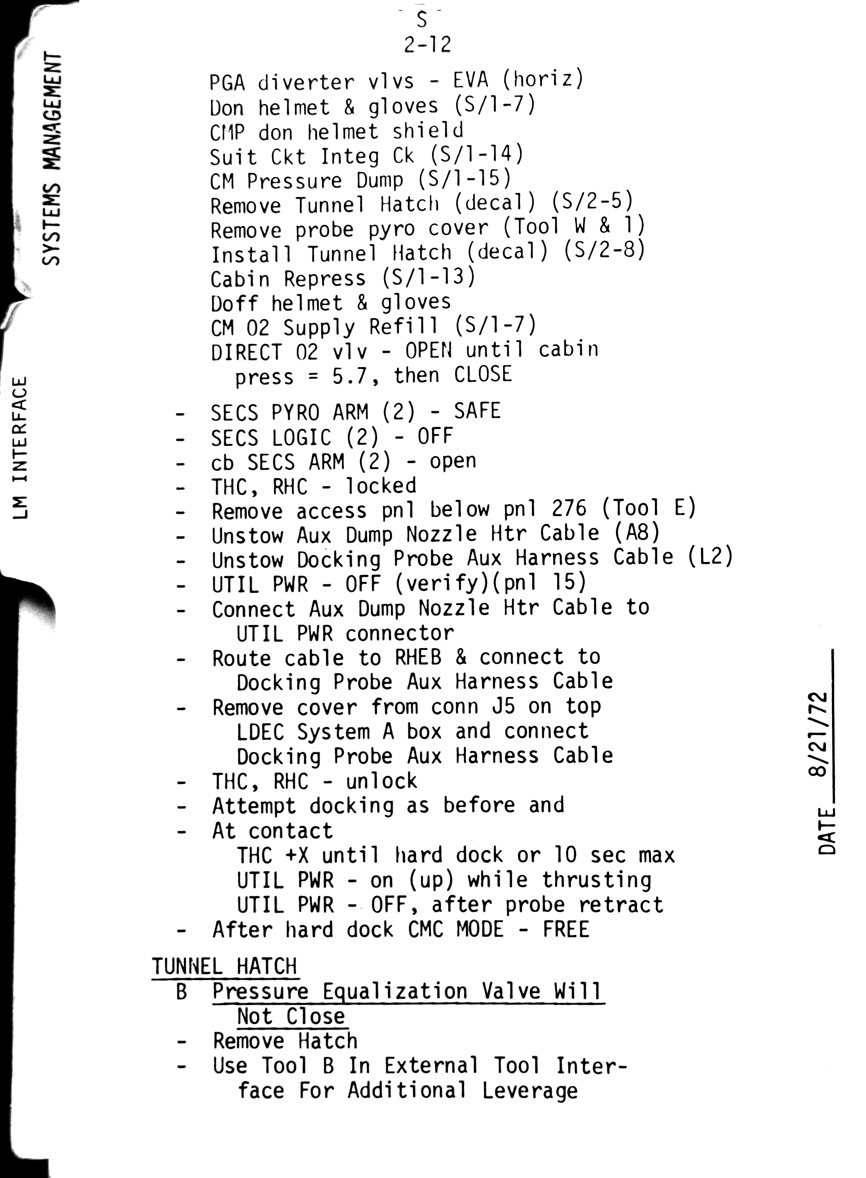 - 2-10 Sub-checklist - CSM/LM pressure equalisation (LOD), Docking hatch verification