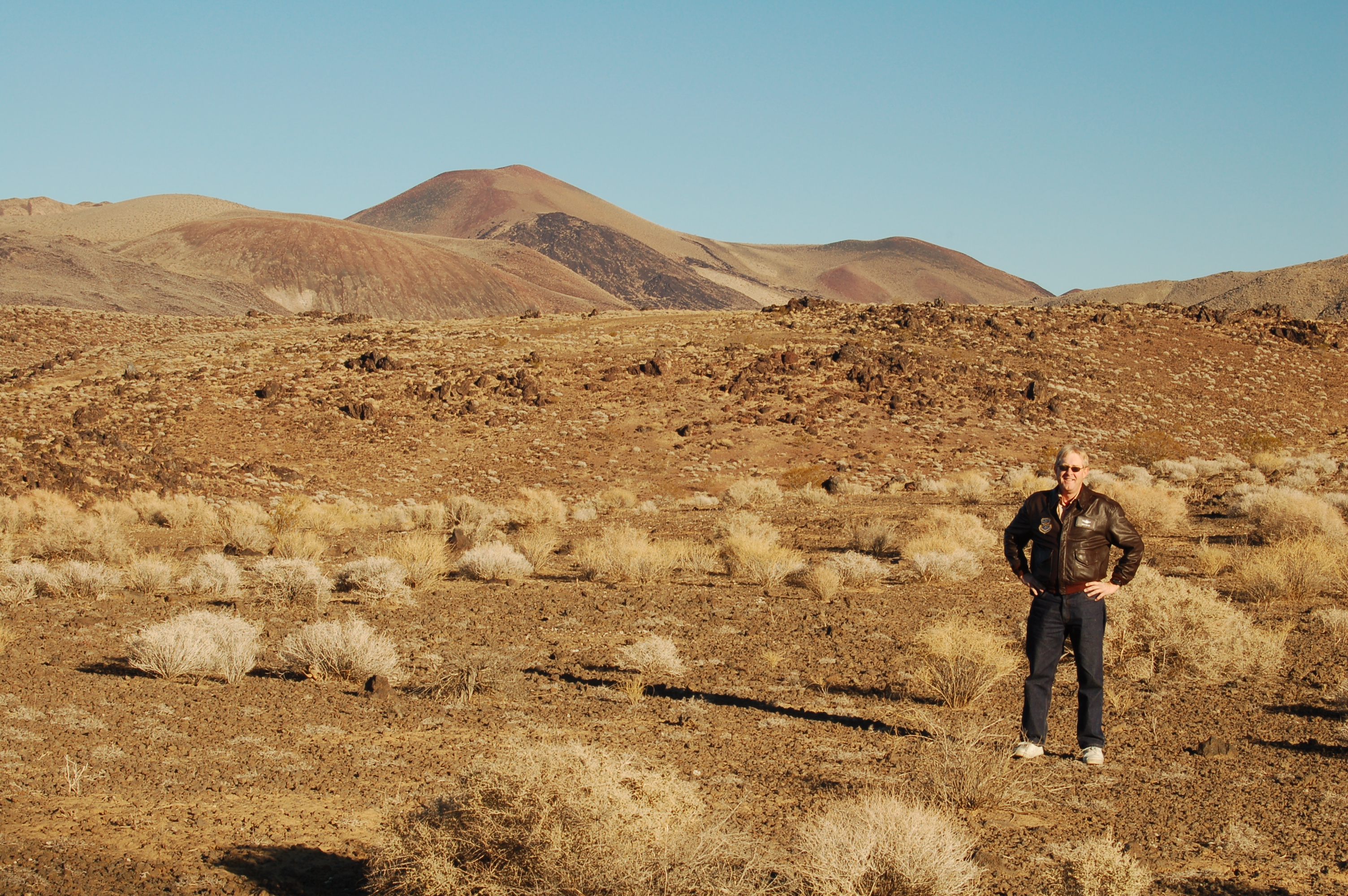 A few years ago, realizing that I live close to where the Apollo16 crew had trained at China Lake, I was able to pinpoint the location and get photographs. Unfortunately, the place where the guys stood is juuuust (sic) inside the security fence that surrounds the Naval Air Weapons Station China Lake. In a high-res version of the photo, you can see the fence on the ridgeline in the near background.