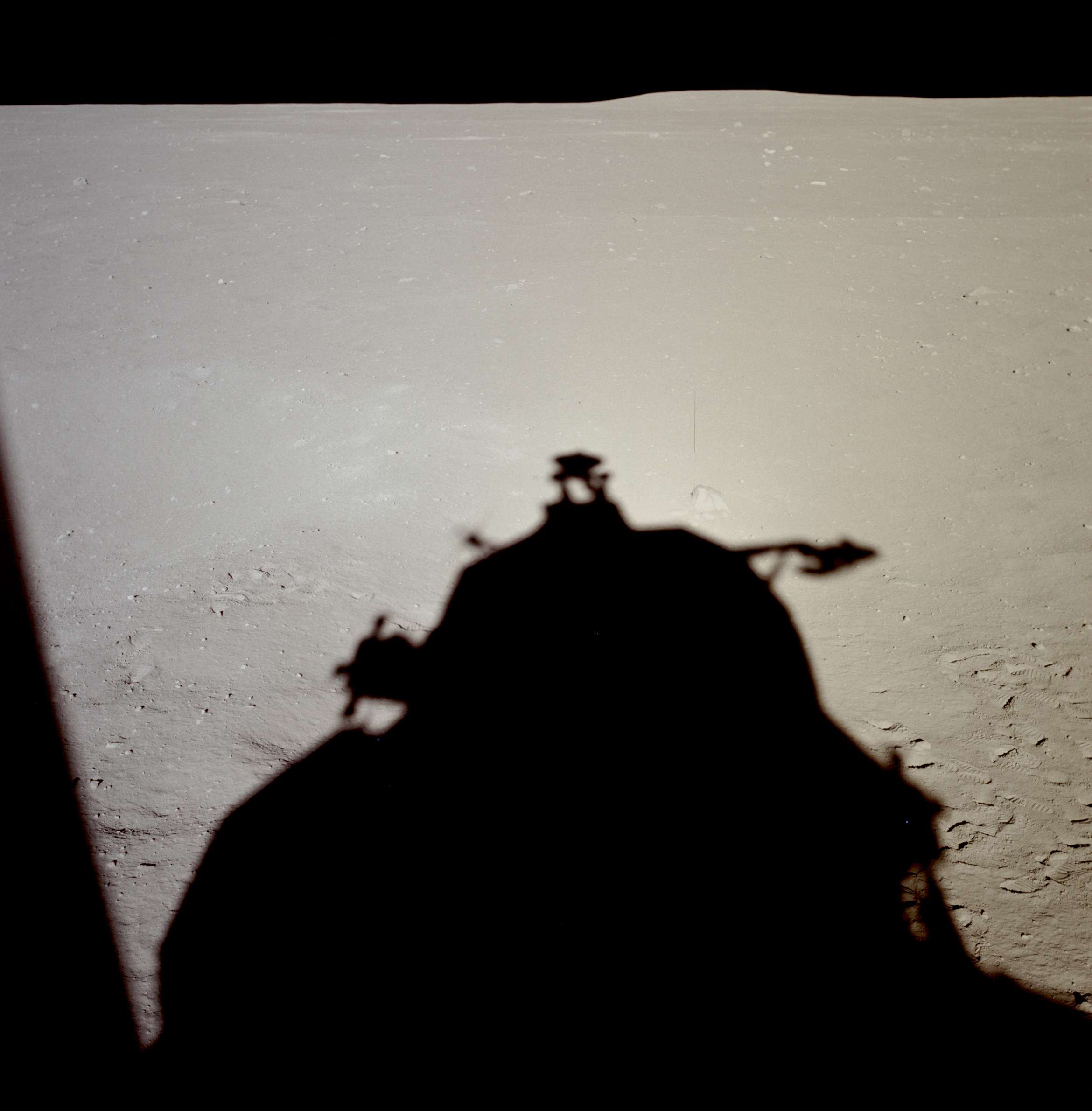 Many of the scans of photos taken during the missions were done from the original film. These scans are being done by NASA Johnson, with some post-processing by Kipp Teague. The film is scanned at 4096 x 4096 pixels per image. (See a discussion from Arizona State University about the scanning process.) Kipp reduced each digital image to approximately 2350 x 2350 pixels (equivalent to 300 dpi) and did minor adjustments of levels to ensure that (1) brightly lit areas of lunar soil were neutral grey, (2) objects with known colors (such as the CDR stripes or the LCRU blankets) looked right, and (3) information in bright or dark areas was not lost. These images from original film are indicated by the notation 'OF300' in the image description. In each case, a 900 x 900 pixel version is also provided.