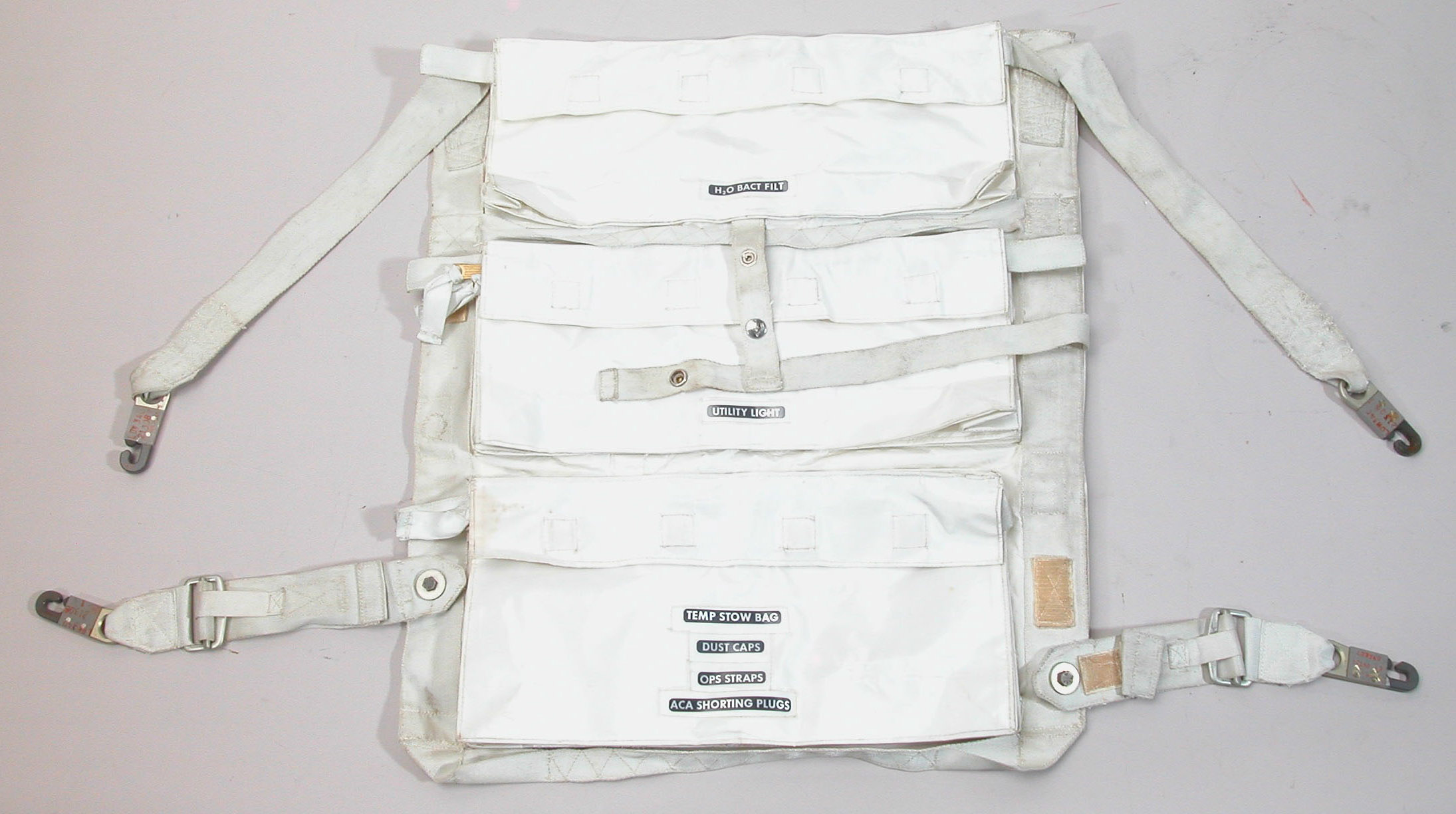 View of the front and righthand surfaces, showing the frame counters and the 'Mag. R' decal. October 2004. Photo by Ulli Lotzmann at the National Air and Space Museum.Buzz's Flown Suit ( 67k )