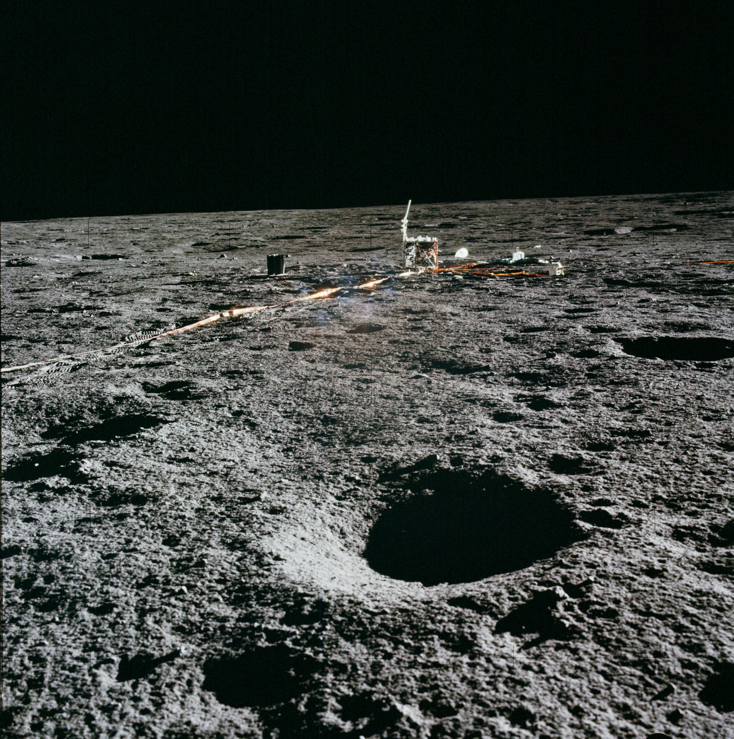 This Apollo 12 Image Library contains all of the pictures taken on the lunar surface by the astronauts together with pictures from pre-flight training and pictures of equipment and the flight hardware. High-resolution version of many of the lunar surface images are included. A source for both thumbnail and low -resolution versions of the lunar surface images is a website compiled by Paul Spudis and colleagues at the Lunar and Planetary Institute in Houston.