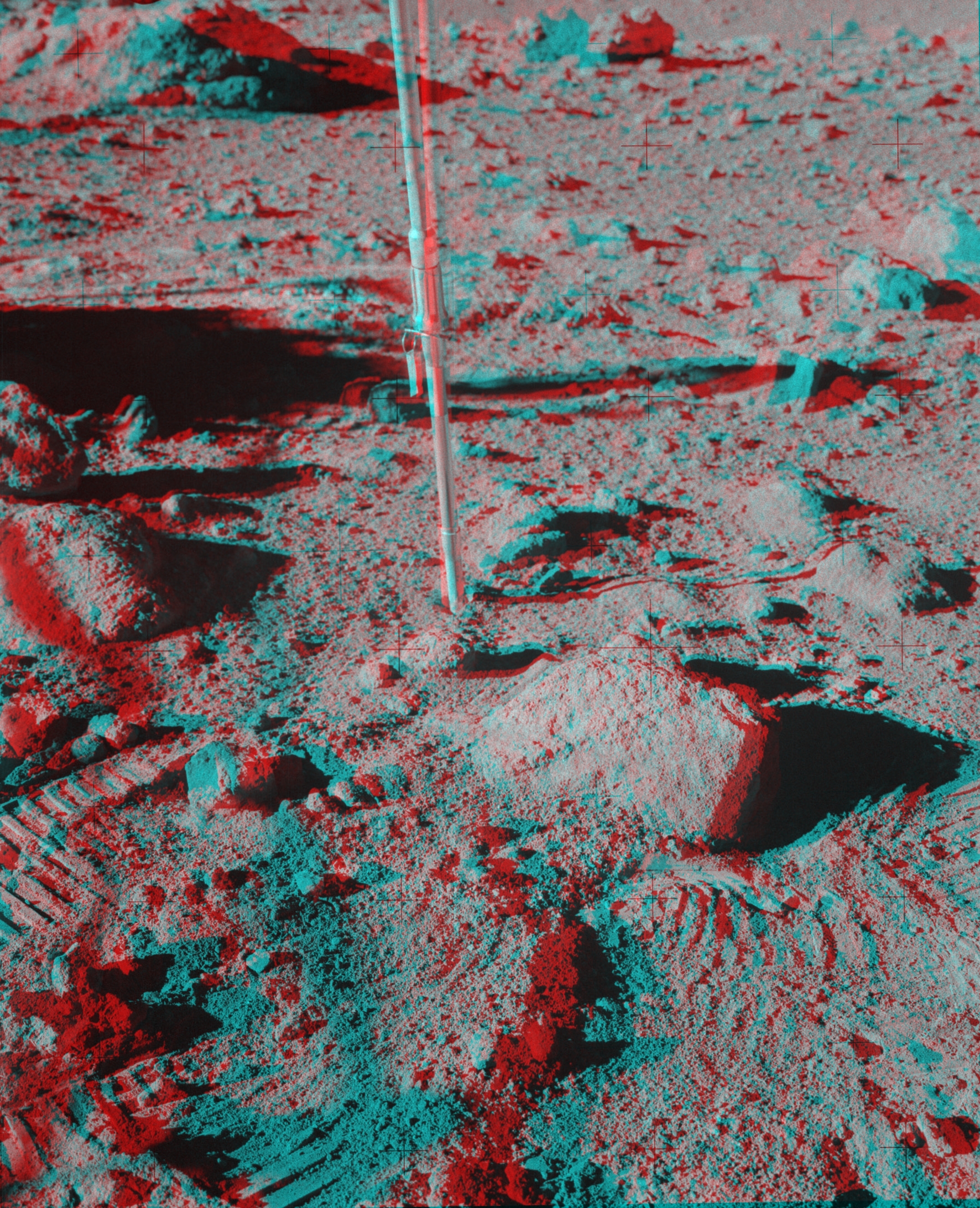 After assembling two core sections and the extension handle, Al Shepard pushed the core into the ground as far as he could by hand.