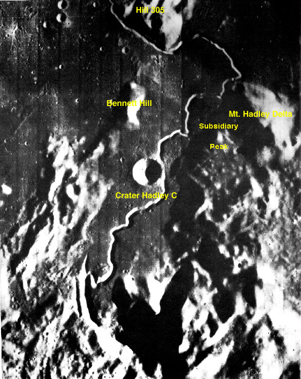 [Scott - "No. Hadley C had good, high resolution stuff, but we had the 20-meter stuff. As we've discussed previously, one reason we didn't know where we were was (the fact that) the maps weren't good enough. They didn't have anything to work with; 20-meter resolution isn't very good. You can't identify many craters that way. So I doubt that there was much good understanding of the relief."]