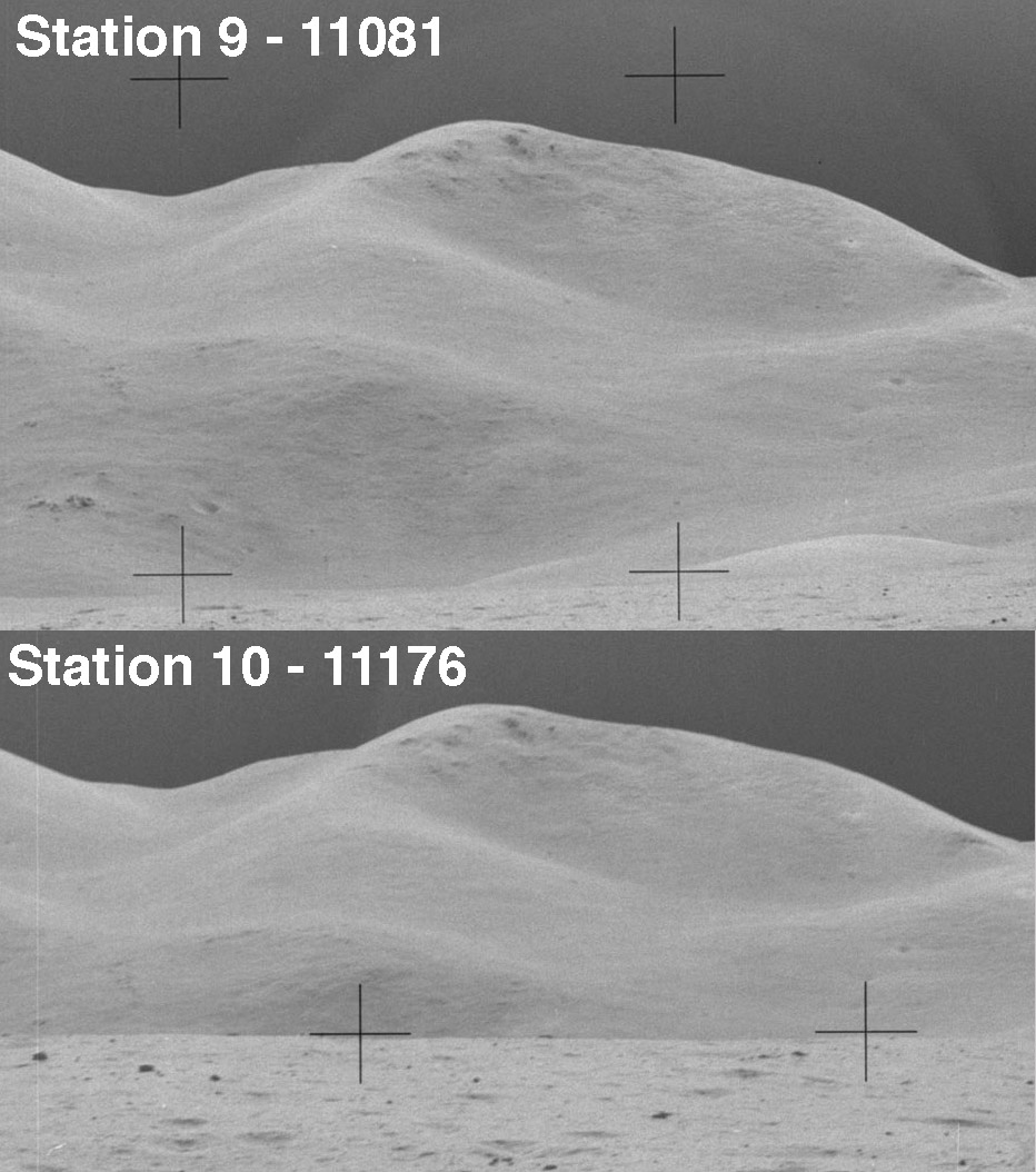 When Dave got back to the LM, he took the time at 167:10:16 to take a number of 500mm shots to the east, including a portrait of the northern candidate. Thirty five years after the fact, it is impossible to know with certainty why Dave took these photographs and none of the southern candidate. The one clue we have is the following exchange Dave and Jim had late in the drive back to the LM: