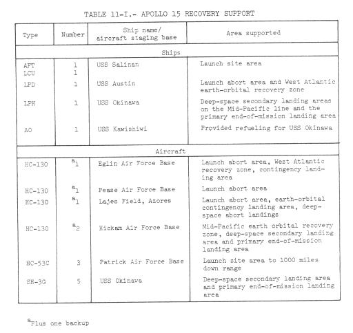 landing. The recovery forces assigned to the Apollo 15 mission are shown