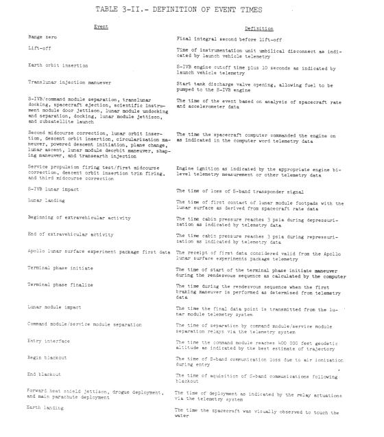 TABLE 3-II. - DEFINITIONS OF EVENT TIMES