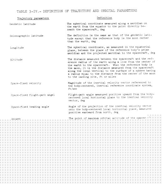 TABLE 3-IV.- DEFINITION OF TRAJECTORY AND ORBITAL PARAMETERS