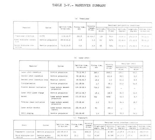 trajectory parameter information; and table 3-V is a summary of maneuver