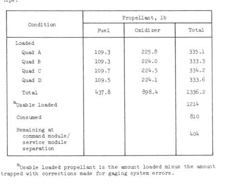 service module reaction control system were as shown in the following