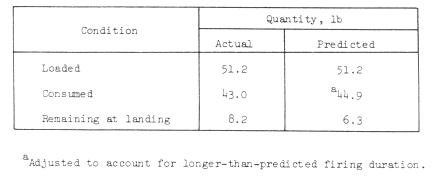 propellant remained at engine shutdown or about 103 seconds of hover time. The