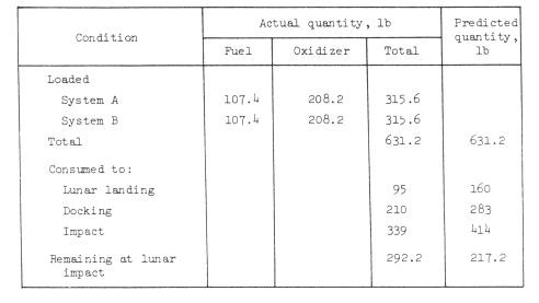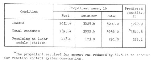 Propellant.- The ascent propulsion system total propellant usage was