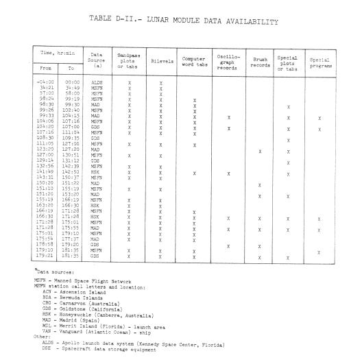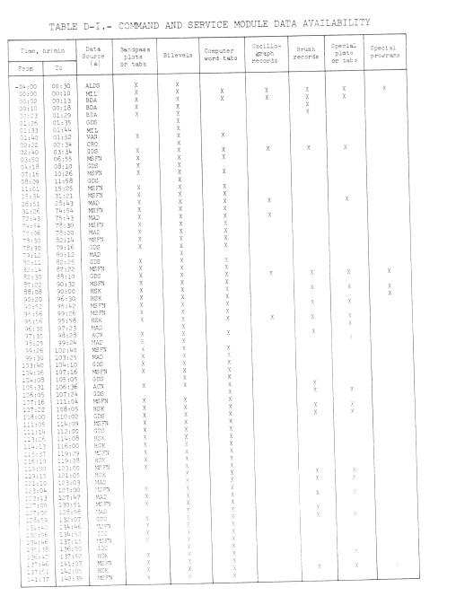 systems performance analyses and anomaly investigations. Table D-I lists the