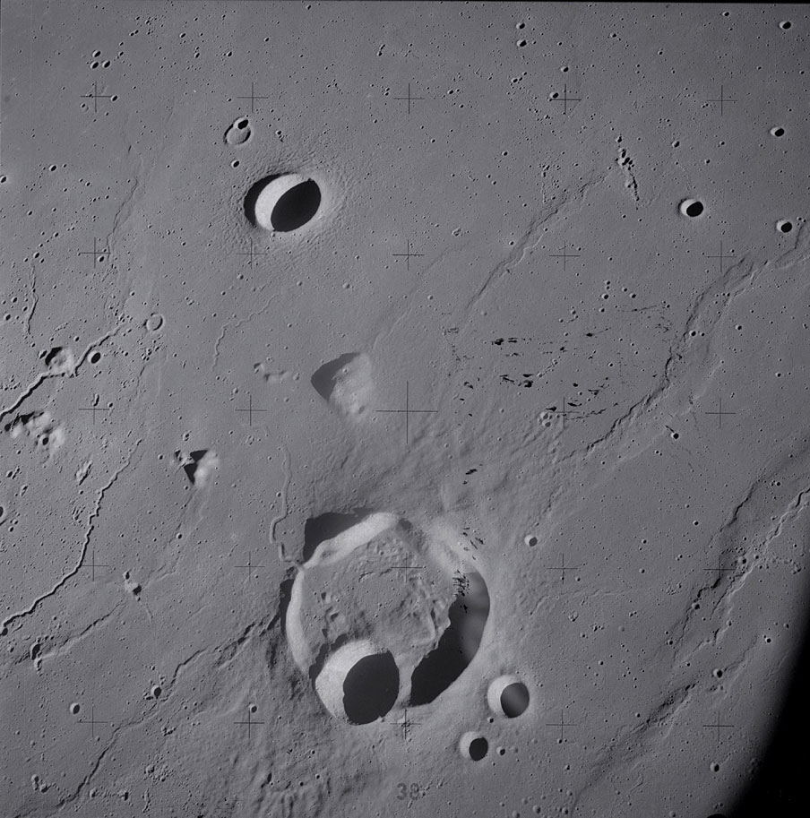 Oceanus Procellarum. Crater Naumann to the lower right. Lichtenberg B to lower left. Naumann G to the extreme lower left. Scan by Kipp Teague / David Woods.AS15-97-13257
