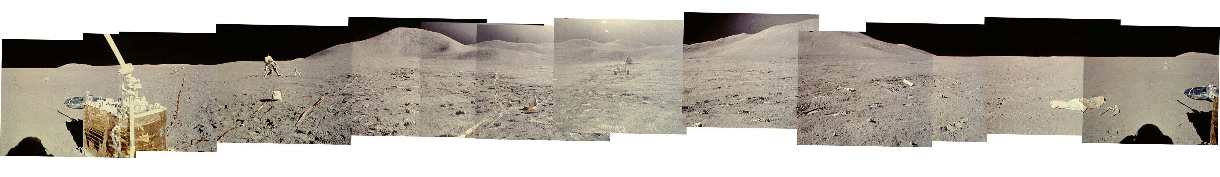 The frames are AS15-84- 11276 to 11283. Assembly by Dave Byrne.123:19:35 Station 2 500-mm Pan of Trophy Point, Horizontal and Vertical Combined
