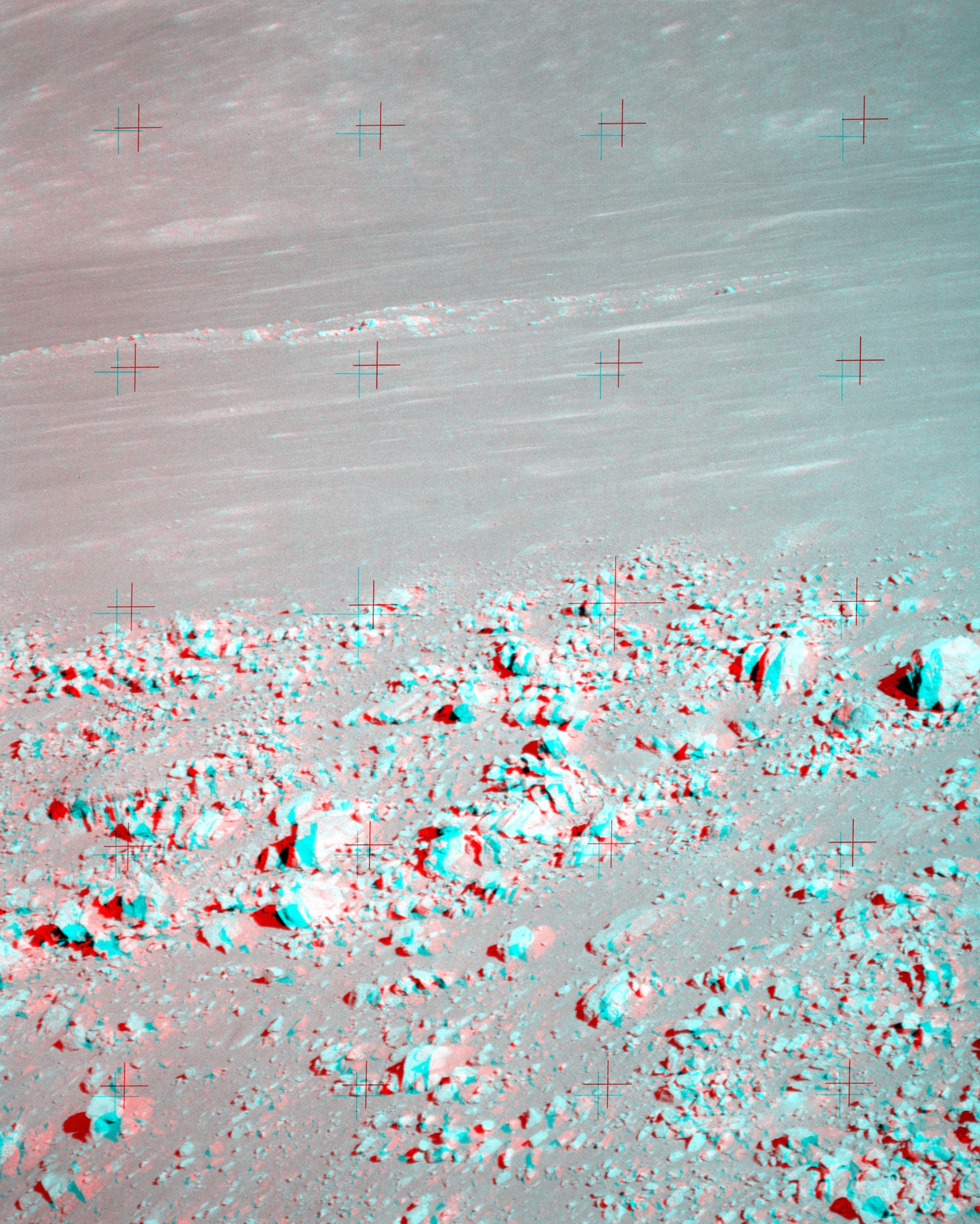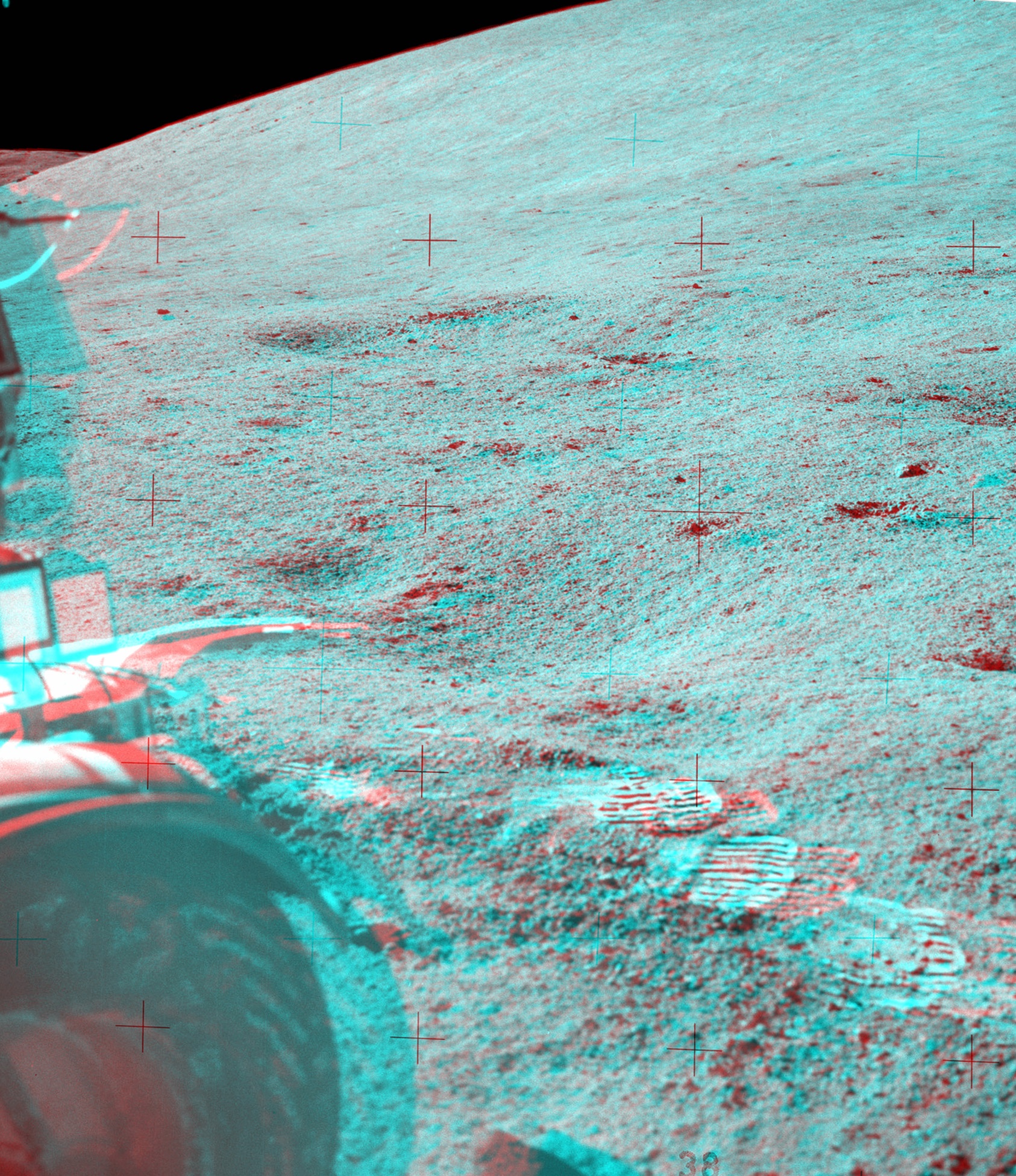 Anaglyphs in the image libraries created from sequential panorama frames by the ALSJ editor exist only because of Yuri Krasilnikov's willingness to teach me the art. Whatever value the anaglyphs have is due to Yuri's insights and guidance. Flaws are my doing. Briefly, panorama stitching software Hugin is used to create both non-stereo pan assemblies and remapped versions of the images. The latter are then made into anaglyphs using GIMP. The individual remapped images are linked from the corresponding Library entries for the original frames. The remapped images can be used to create stereo views using other methods.