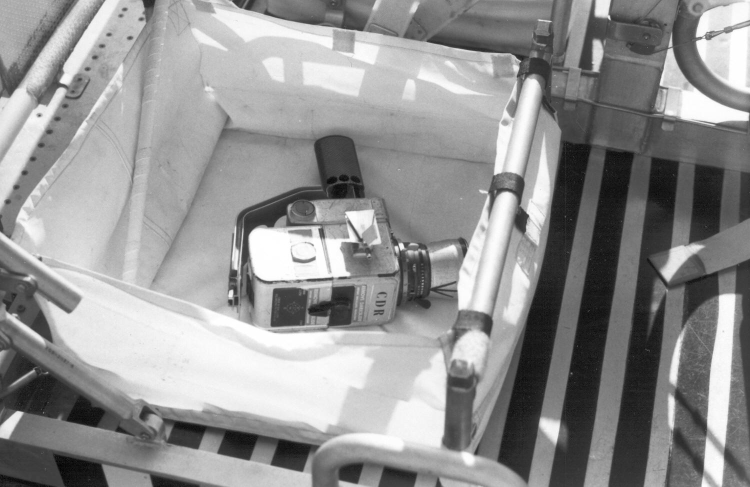 [Young, from the 1972 Technical Debrief - "Okay, the far-UV camera. I didn't have any problem with off-loading it. I expected trouble from the bags. It came loose and I expected trouble picking the thing up and getting it off and I expected problems with keeping it out of the dust. I was able to get around the front of the vehicle (meaning the west side of the LM) and hold it over my head. It was easy to carry that weight around."]