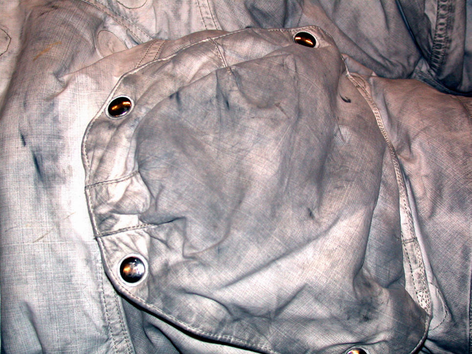 Lotzmann write "According to Amanda Young, this suit is in the very best condition of all flown lunar surface suits. It shows only minor damages. She emphasized that as long as she has something to do with preserving the lunar suits, this specific suit will never be displayed again.