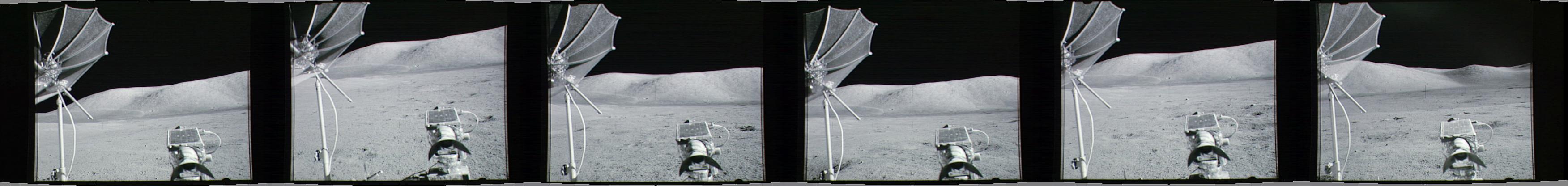 [Jack will take a series of pictures as Gene turns the Rover in a circle. These pictures are AS17-138- 21077 to 21092. Because of the glare of the Sun, the up-Sun frames - 21079 and 21080 - don't show much detail.]143:50:20 Cernan: Wait a minute. Wait a minute. Okay. Let's take one from right here. I want the whole thing (that is, the whole valley). (Pause) You ready to start?