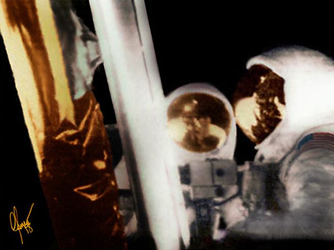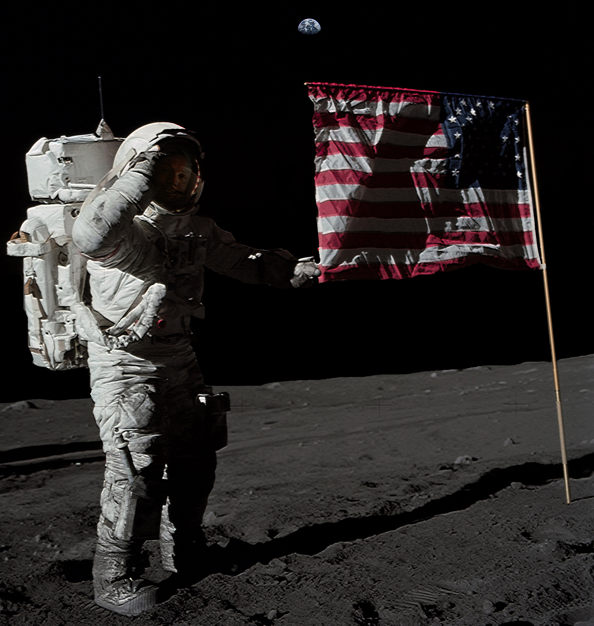 The following creations show the fun side of being an Apollo enthusiast. Many of the offerings use Apollo images and scenes as a basis, but with unexpected additions. Some show members of the ALSJ/AFJ team having Apollo-like adventures here on Planet Earth. And still other offerings make use of Apollo material for various artistic purposes. Enjoy!