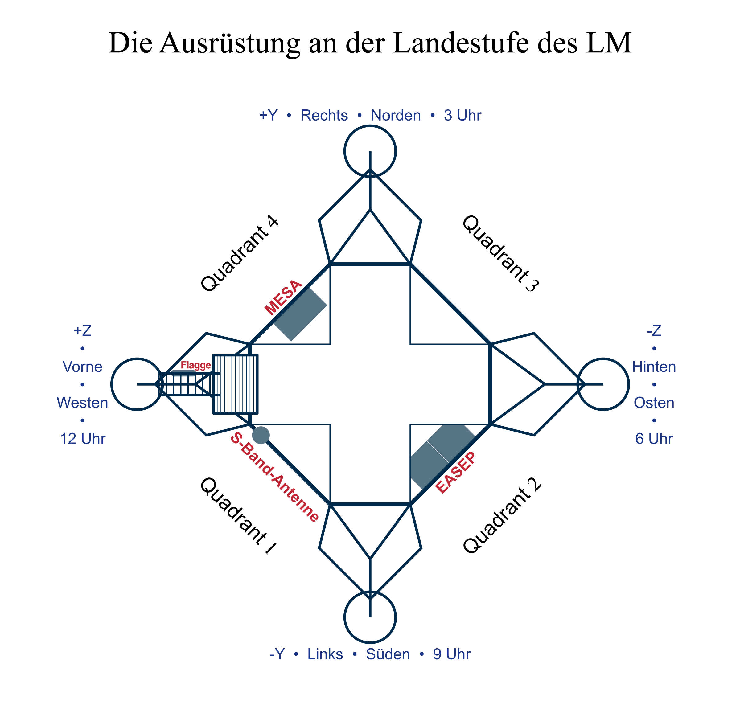 LMLunar Module nichts Ungewöhnliches erkennen. Alle Quadranten sehen gut aus. Die primären und sekundären Streben der Landestützen sind in Ordnung. Alle Antennen sind an ihrem Platz. Unter dem LM