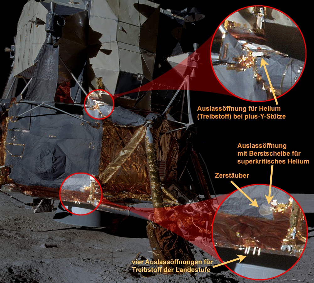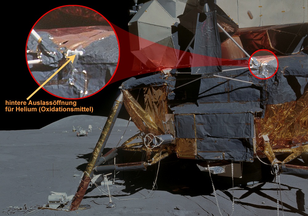 LMLunar Module gibt es keine Anzeichen für irgendwelche Probleme, weder vom Triebwerksstrahl noch durch irgendwelche Flüssigkeiten aus den Tanks.