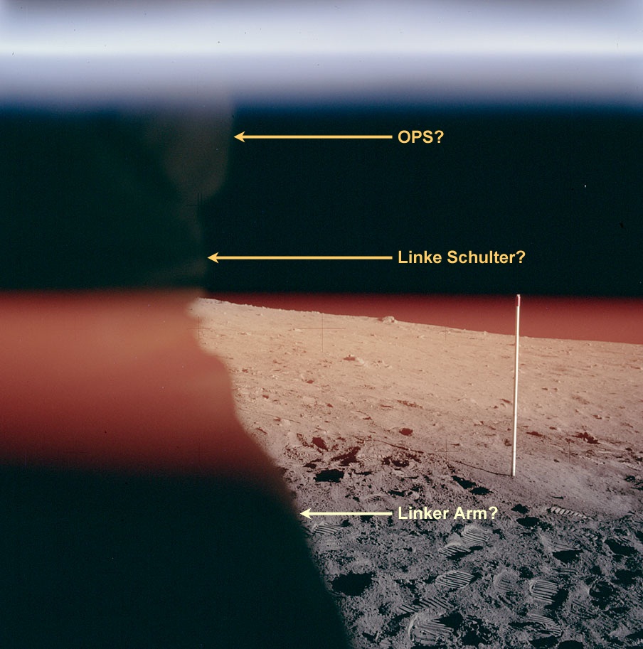 Das nächste Foto ist AS11-40-5929 und man sieht darauf, wie Buzz das Band über die linke Klappe der Ladebucht hängt.
